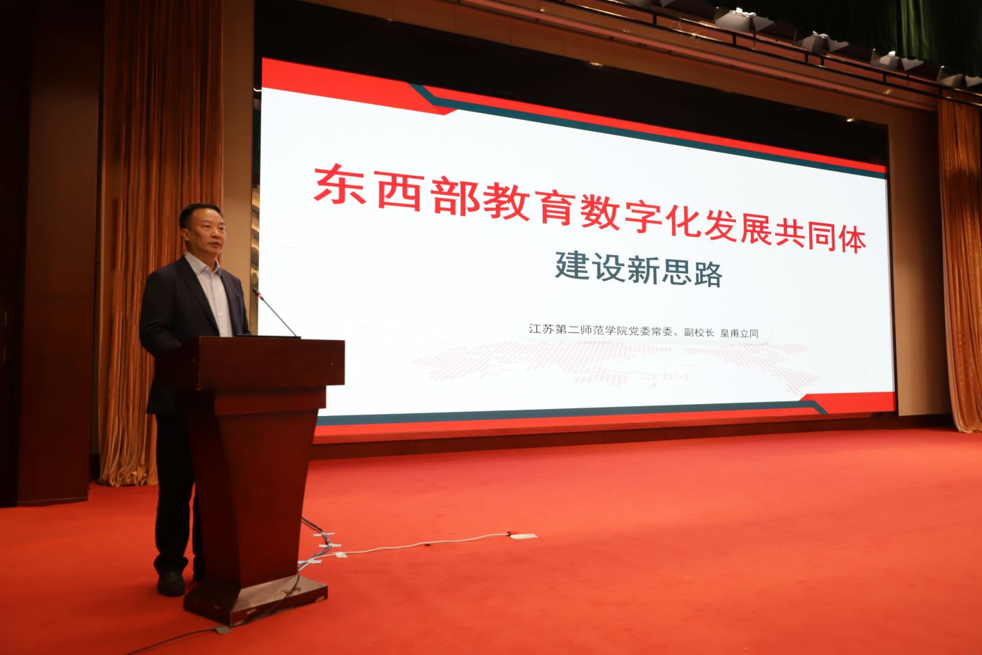 中国教育科学研究院原研究员张杰夫,江苏第二师范学院党委常委、副校长皇甫立同分别以《构建教育数字化赋能高质量发展新生态》《东西部教育数字化发展共同体建设新思路》为题作专家报告。