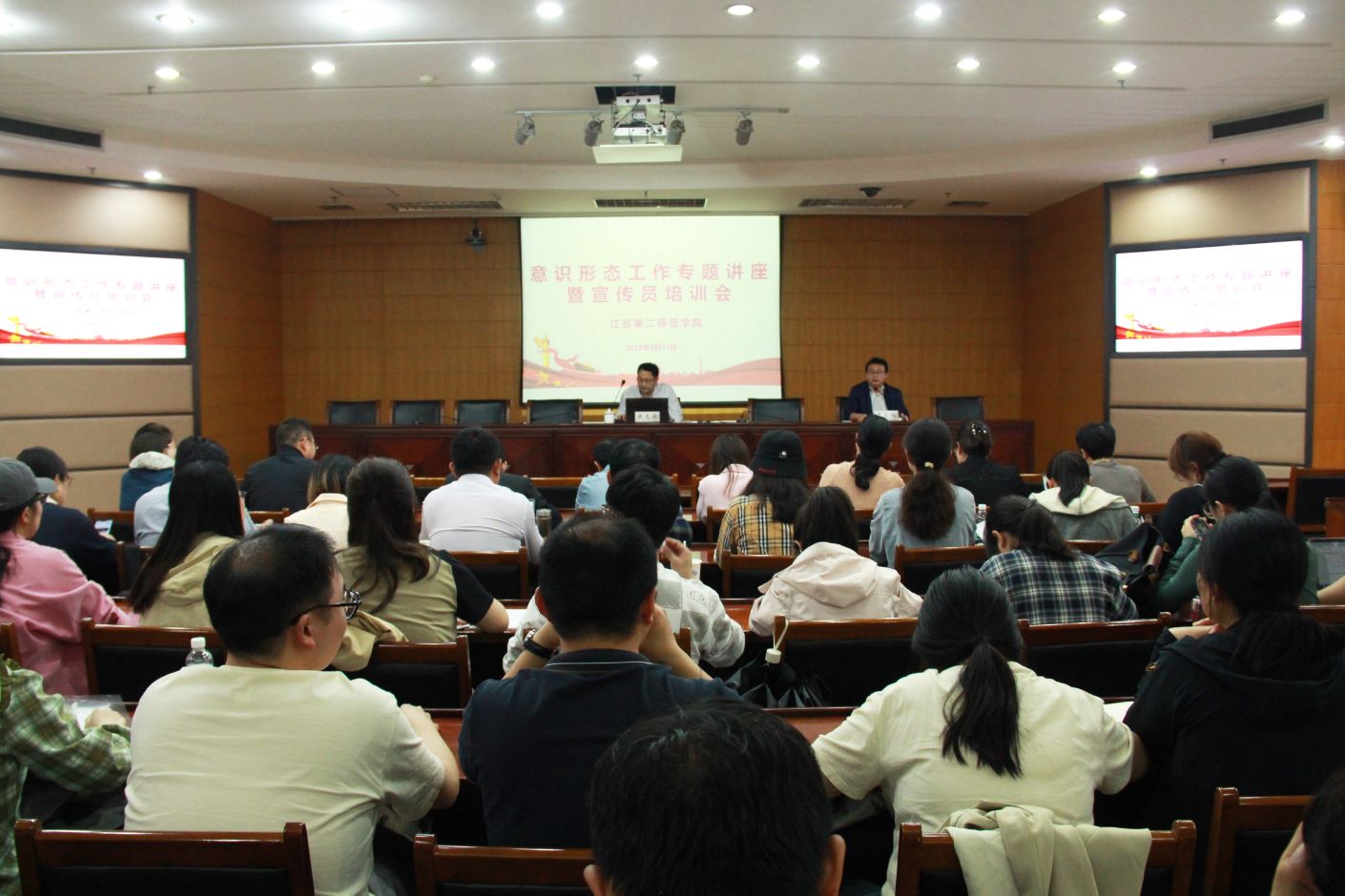 5月11日下午,我校在草场门校区511会议室举行意识形态专题培训,邀请江苏紫金传媒智库研究员、副秘书长,江苏省公关关系协会副会长、中国社科院舆情实验室舆情专业委员会委员燕志华教授作专题讲座。各二级党组织书记、辅导员、宣传员100余名同志参加了培训。培训由党委常委、党委宣传部部长李安林主持。