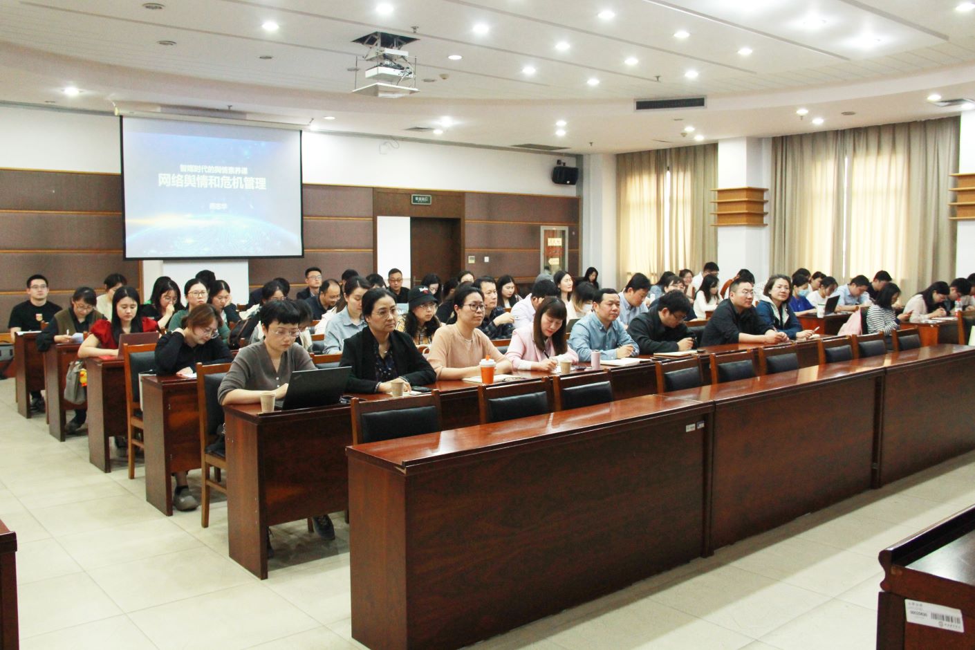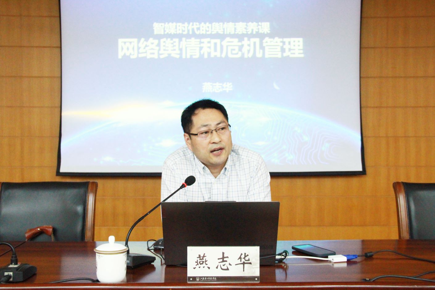 燕志华以《网络舆情和危机管理》为题作报告。他结合大量鲜活案例,围绕社交软件和情绪传播、网络舆情基本原理、公众人物的舆情素养、风险与危机的管理等方面,系统总结了智媒体时代下网络舆论传播特点,深入分析了涉高校舆情热点事件的处置经验和教训,提出了妥善应对处置网络舆情的方法和技巧。