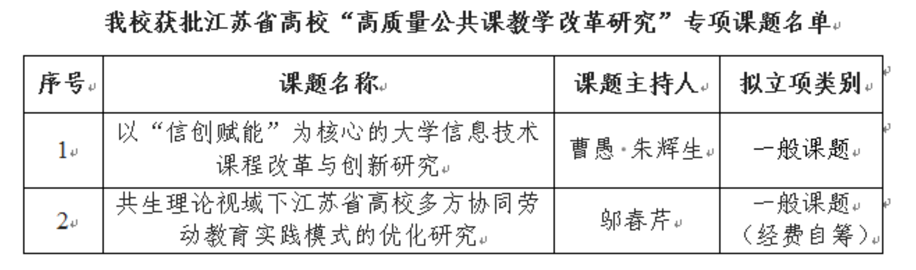 近日,江苏省高等教育学会公布了2024年江苏省高校“高质量公共课教学改革研究”专项课题评选结果,我校2项课题获批立项。