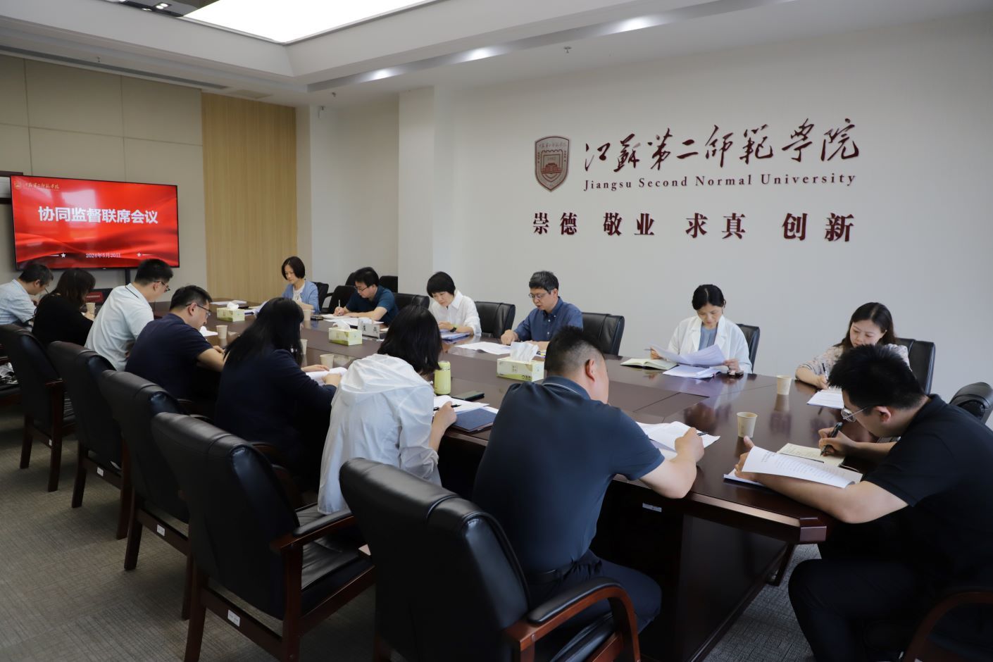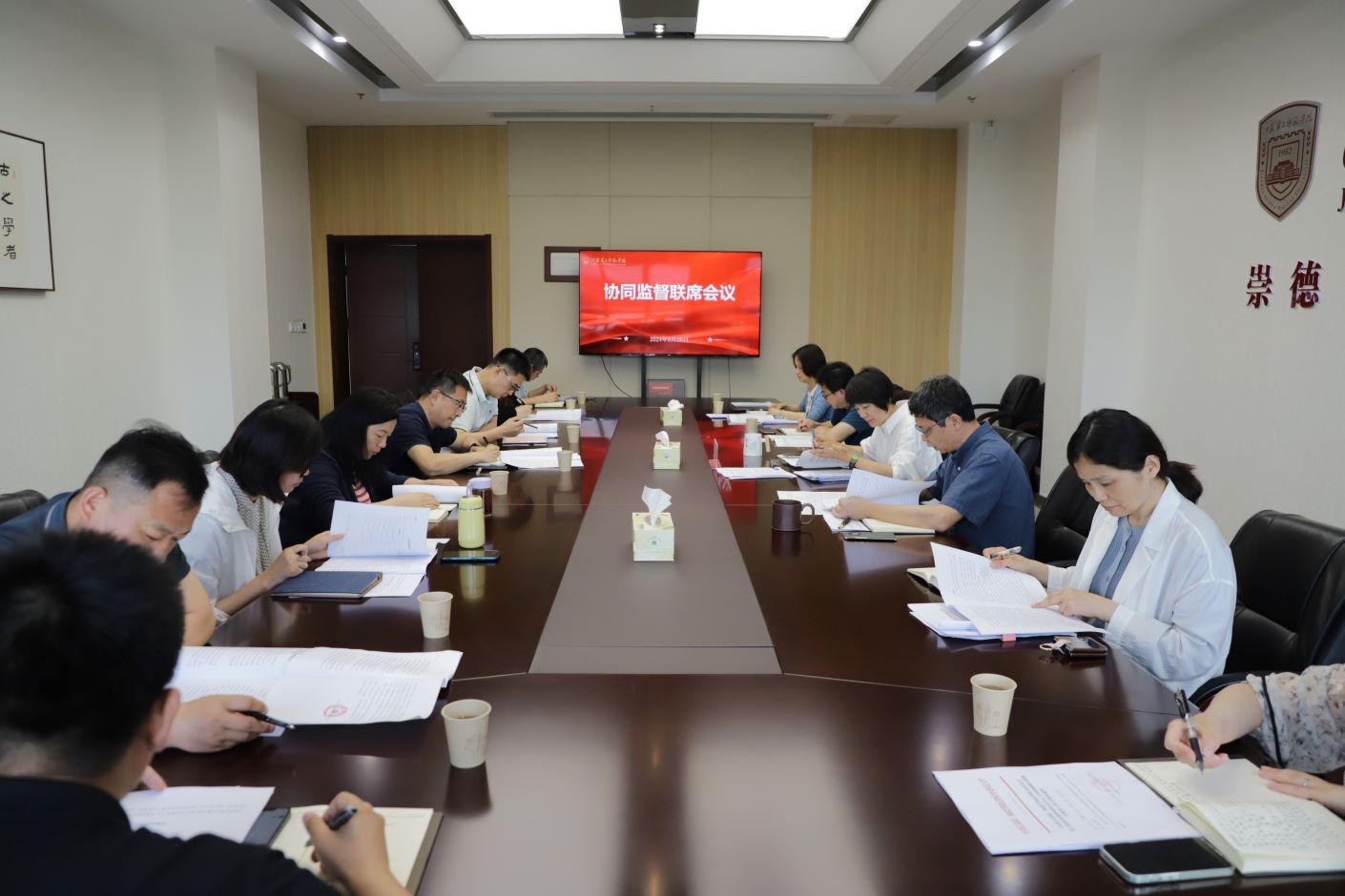 为使学校各级各类监督有机贯通、相互协调、形成合力,更好推动学校高质量发展,5月20日下午,我校在石湫校区崇德楼319会议室召开协同监督联席会议。党委常委、纪委书记、派驻监察专员崔燕主持会议。党委办公室(校长办公室)、纪委办公室、党委巡察办、党委组织部、党委宣传部、党委教师工作部、党委学生工作部、党委保卫部、审计处、财务处、教务处、科研处、后勤与基建处等13个部门相关负责同志参加会议。