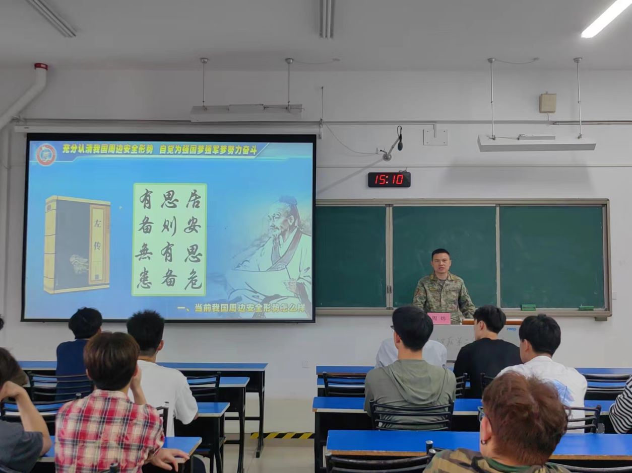 周炜以“充分认清我国周边安全形势,自觉为强国梦强军梦努力奋斗”为题,指出我国面临的安全形势是多元的、复杂的,必须居安思危,不忘忧患;随着新型军兵种结构布局形成,迫切需要通过高校征兵这个主渠道将高素质的兵员输送到部队;大学生入伍经受锻炼,不仅能丰富阅历、增强体魄、增长才干,关键能培养坚定顽强的意志和品质,脚踏实地的工作作风和坚韧不拔的毅力,使同学们成为政治坚定、技术过硬、作风优良的现代化高素质人才。他希望同学们胸怀祖国和人民,把个人梦想融入强国梦、强军梦,在充满光荣与梦想的远征中建功立业、实现人生价值。