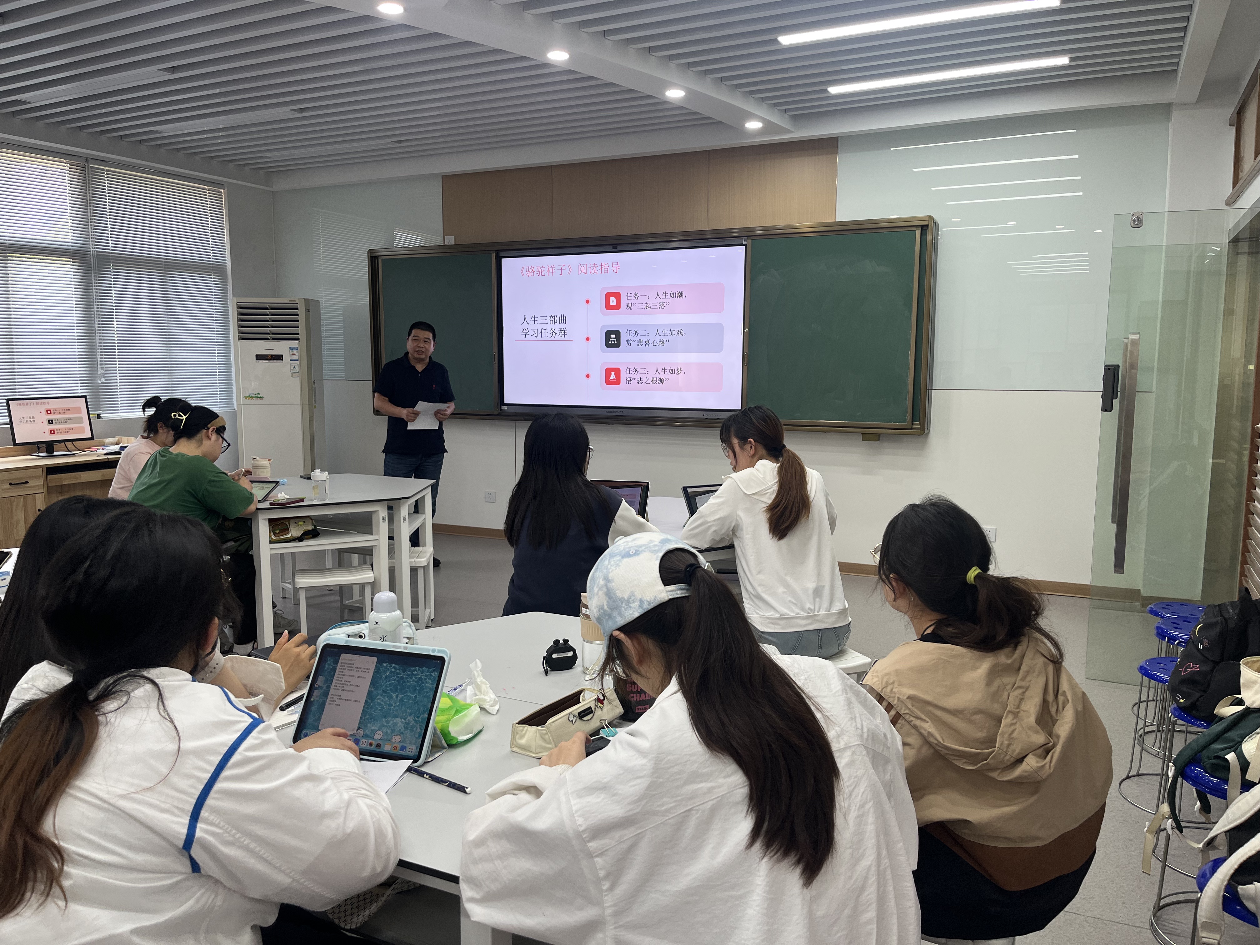 在五天的见习中,同学们先后观摩和听取了杨友红团队45节公开课和讲座。其中公开课涉及了诗歌、散文、古文、戏剧等教学题材;讲座涉及语文核心素养、单元整体教学、深度阅读、诗歌整合教学等专业教学理念与实施,教师专业成长、教师阅读等专业发展。