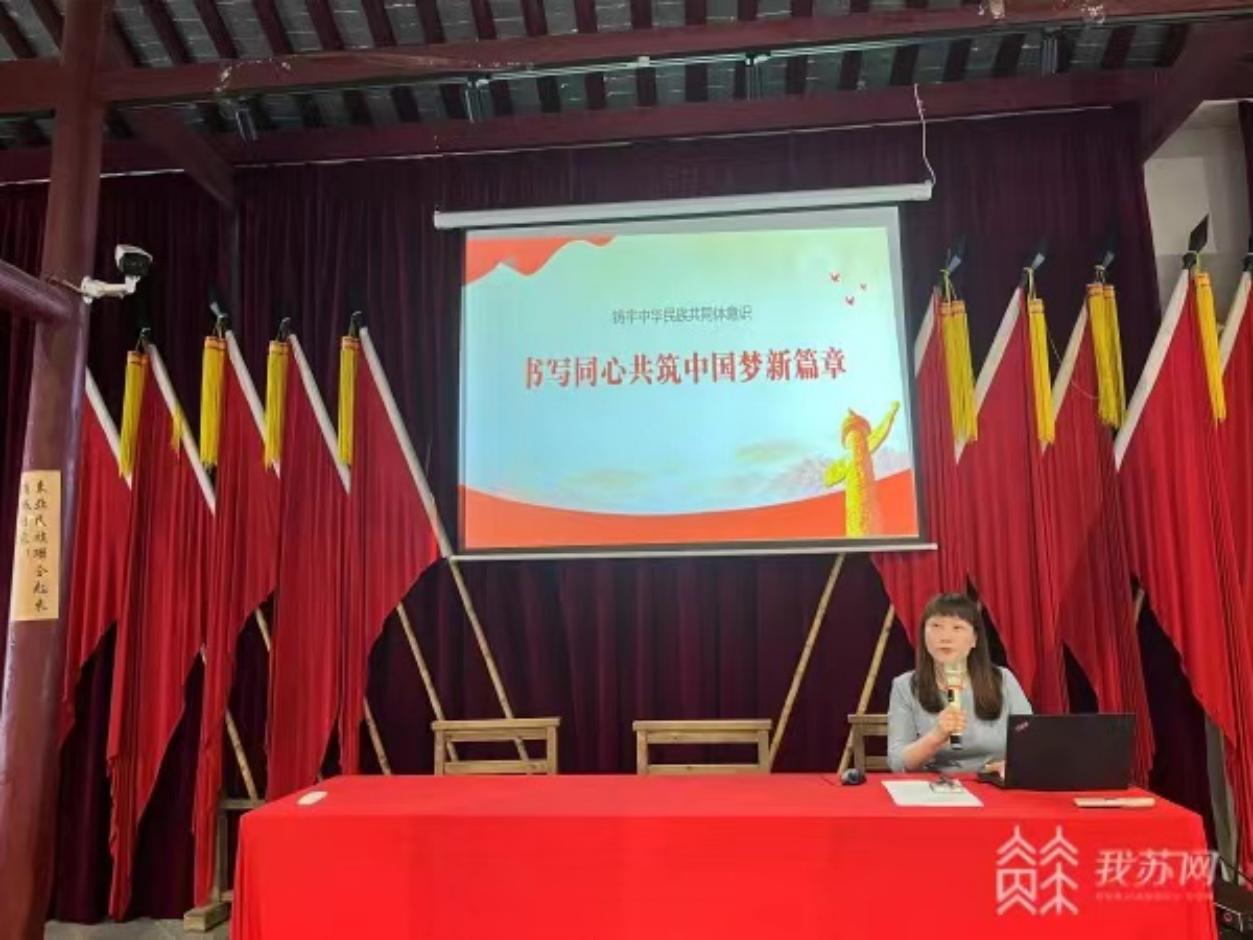 在铸牢中华民族共同体教育环节,江苏第二师范学院党委统战部部长陈蓓做“铸牢中华民族共同体意识,书写同心共筑中国梦新篇章”主题讲座。她分别从百年来中华民族共同体意识演进历程、铸牢中华民族共同体意识的时代之需等方面进行细致讲解。