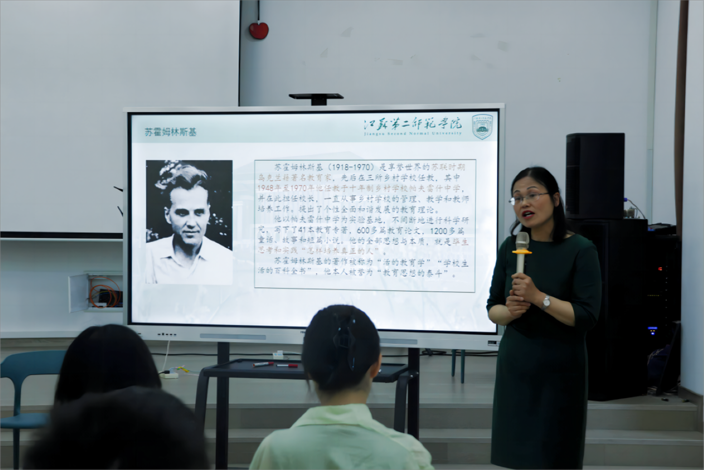 第二期于5月8日下午两点在崇德书院一楼活动室举行。教育科学学院副院长邬春芹教授以“教师是儿童学习火花的点燃者与保持者——《给教师的建议》阅读感悟”为主题,结合自身多年的教学经验和研究经验,从苏霍姆林斯基生平、《给教师的建议》的主要内容和阅读感悟三个方面分享了自身对教育家精神的深刻理解和感悟,并勉励学生们争做“时代大先生”。