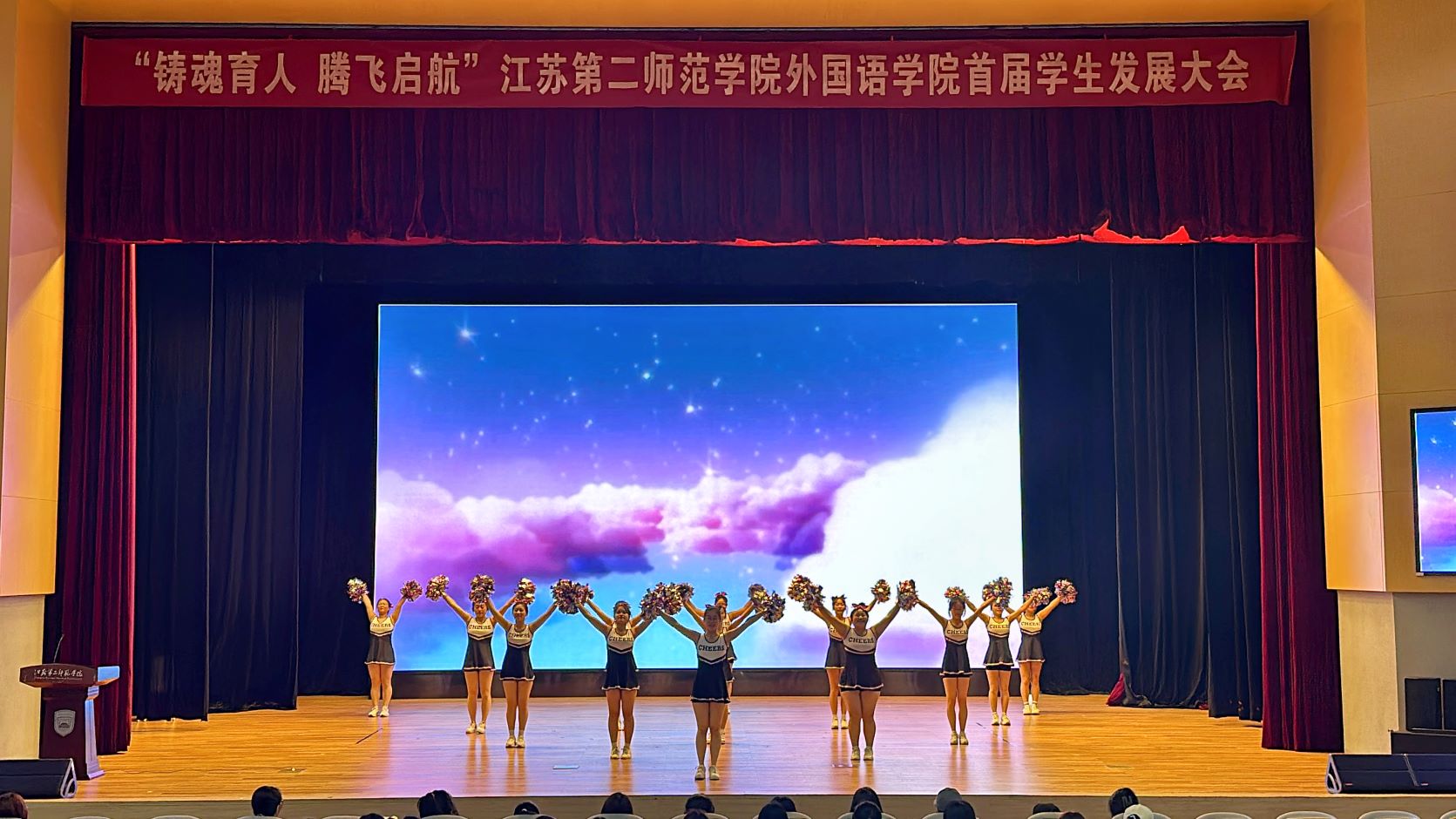 大会由啦啦操表演拉开序幕,该项目在悦动体育节啦啦操比赛中荣获第一名,展现了外语学子的青春活力。