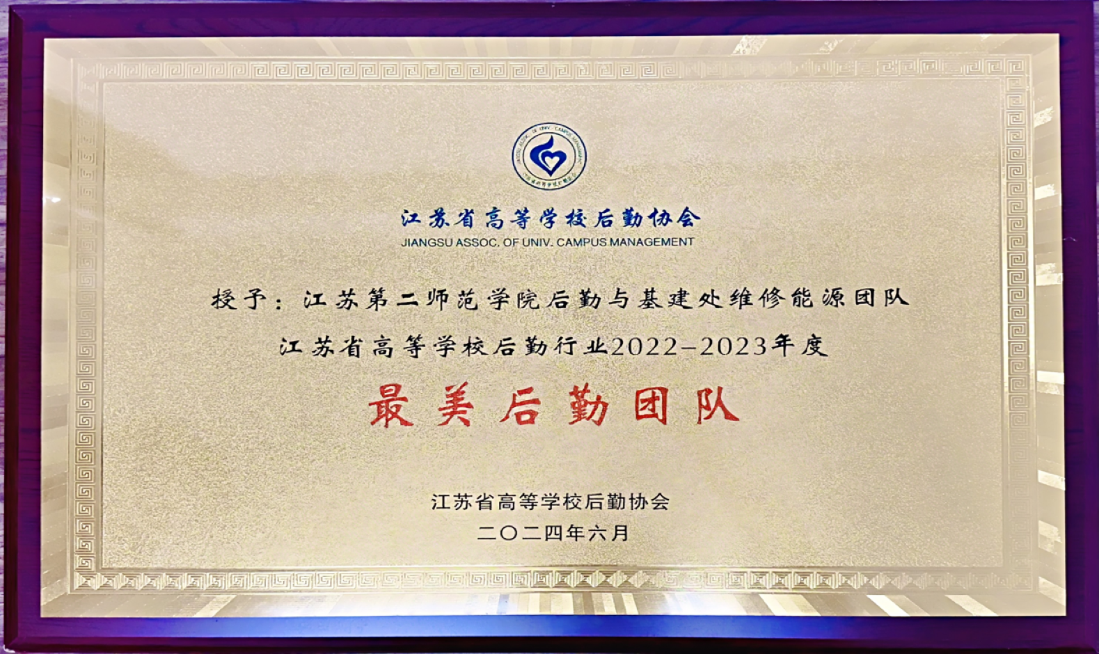 我校后勤与基建处维修能源科获评“江苏省高校后勤行业2022-2023年度最美后勤团队”。