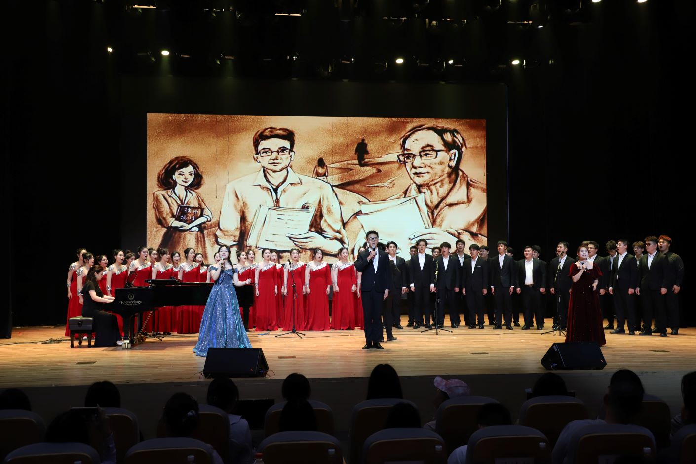 音乐会最后,毕业生们以一首充满离愁别绪又满怀温情的大合唱《告别时刻》,彼此互道珍重,用歌声与师友们拥抱、挥手和告别,一起扬帆起航,奔赴星辰大海。