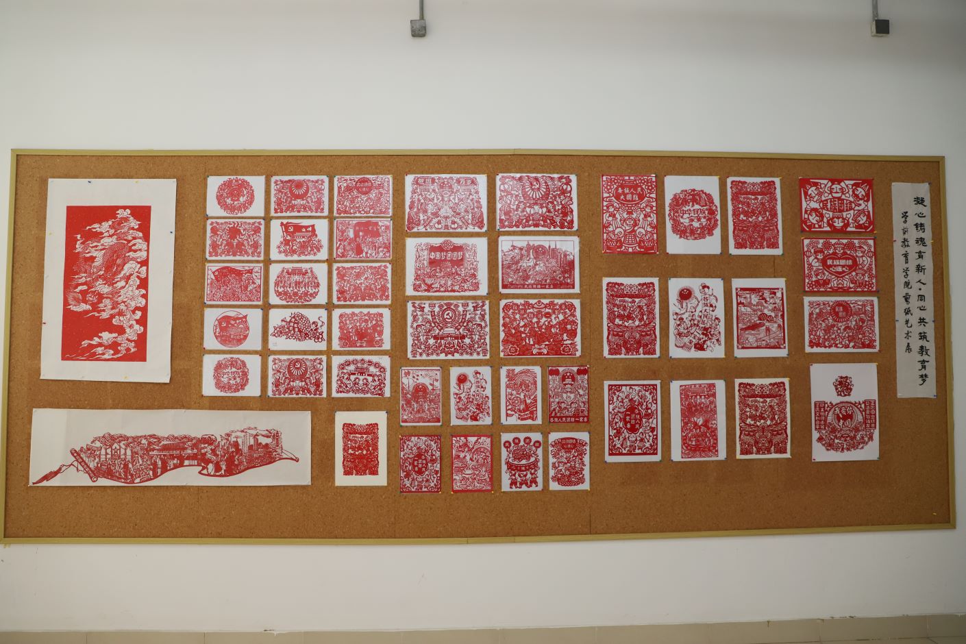 本次展览立足于牢中华民族共同体意识教育与艺术实践教学培养目标,通过展示中华民族优秀传统技艺—剪纸、书法和绘画,弘扬中华民族传统文化,让学生在参与体验传统技艺中近距离感受中华民族独特鲜明的历史底蕴和中华优秀传统文化魅力,大力营造中华民族一家亲的浓厚氛围,进一步坚定“五个认同”。此次展览展示剪纸作品和书画作品均来自于学院学生平时的课堂习作,集思想性、艺术性于一体,围绕铸牢中华民族共同体意识教育的主题进行多元化的创作,展现了学生坚定的文化自信和专业自信,凸显了学生卓越的人文素养、专业知识和综合实践能力。