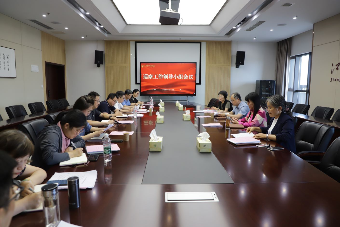 6月17日下午,校党委巡察工作领导小组会议在石湫校区崇德楼318室召开。党委书记、巡察工作领导小组组长王鲁沛,党委副书记、副校长刘继红,党委常委、纪委书记、巡察工作领导小组副组长、首轮巡察一组组长崔燕,党委常委、副校长、首轮巡察二组组长赵玉蓉出席会议。巡察工作领导小组成员和巡察组成员参加会议。崔燕主持会议。