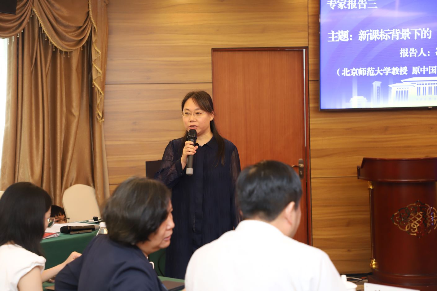 在专家报告阶段,江苏教育学会名誉会长杨九俊、中国教育发展战略学会常务副会长康宁、北京师范大学教育学院教授冯晓霞、南京师范大学教育科学学院院长王建华围绕基础教育改革和发展问题发表演讲。与会专家学者就高质量教育管理促进县域教育振兴、协同研究与江苏基础教育高品质发展等话题展开广泛研讨。