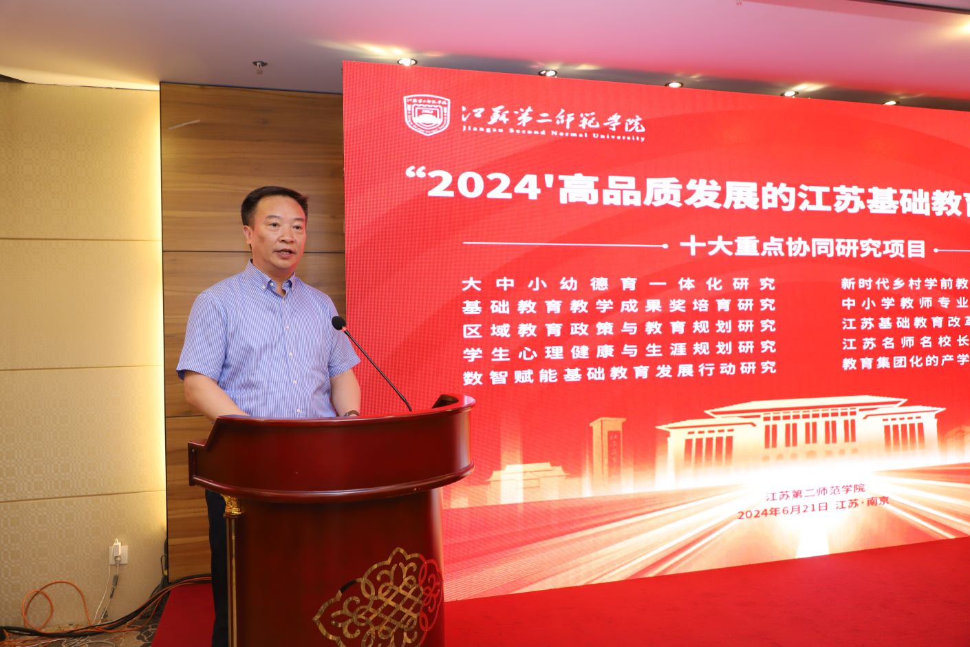 高质量发展需要办好高质量教育。高质量教育关乎强国建设、民族复兴,是党之大计、国之大计,要求涵养师德师风,培养新时代的基础教育教师队伍。6月21日,“2024高品质发展的江苏基础教育”研讨会在我校举行。会议面向基础教育研究的时代需求,大力弘扬教育家精神,以专家报告、经验分享与圆桌对话等形式展开深入研讨,同时举行发布“基础教育高品质发展研究院”十大重点协同项目,助力江苏基础教育高品质发展。