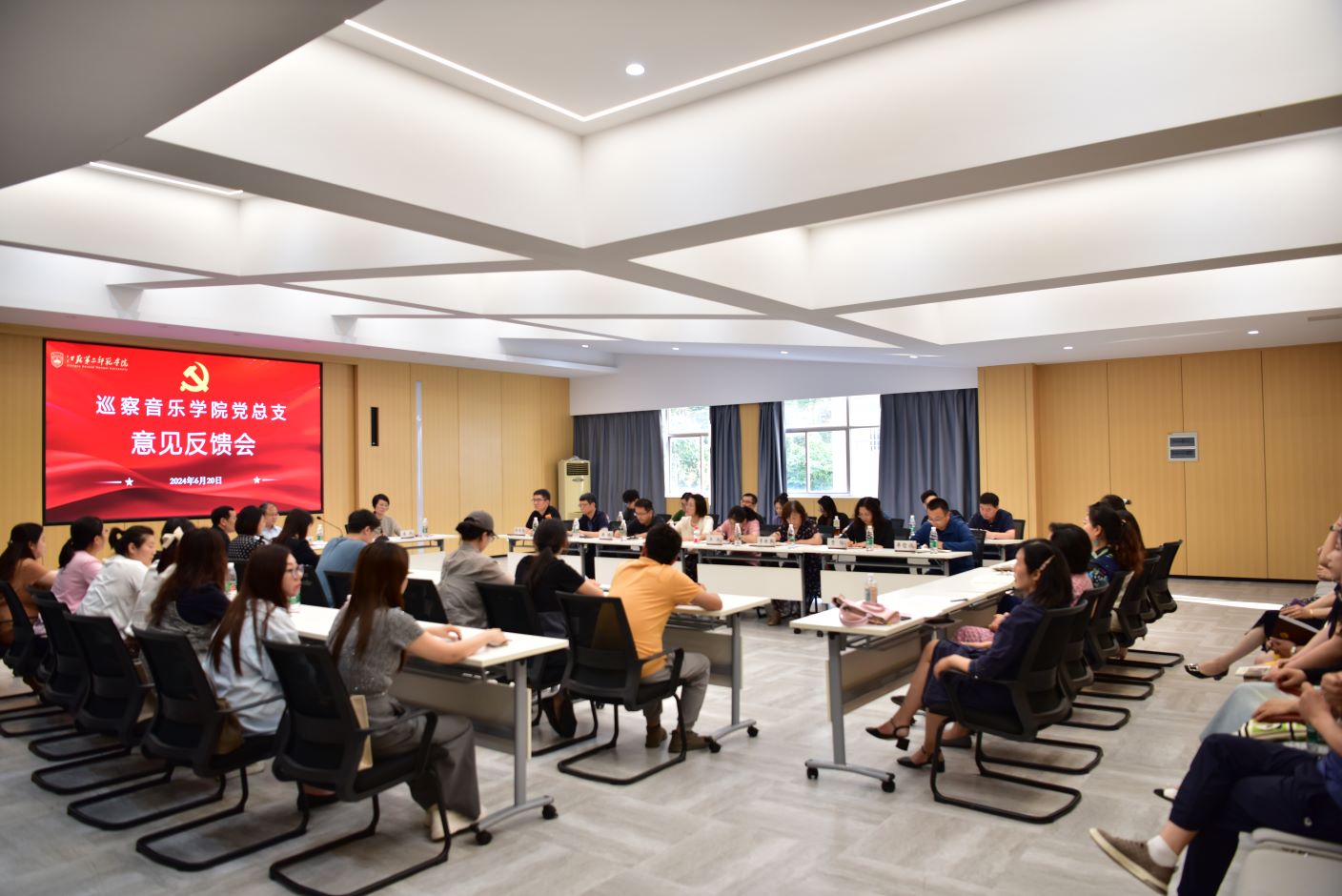 根据校党委巡察工作统一部署,6月19日至20日,党委首轮巡察组分别召开巡察意见反馈会。党委书记、巡察工作领导小组组长王鲁沛出席音乐学院和美术学院党总支巡察意见反馈会。党委常委、纪委书记、第一巡察组组长崔燕,党委常委、副校长、第二巡察组组长赵玉蓉分别出席反馈会,各巡察组成员、被巡察单位领导班子及全体教职工参加会议。反馈会由被巡察单位主要负责人主持。