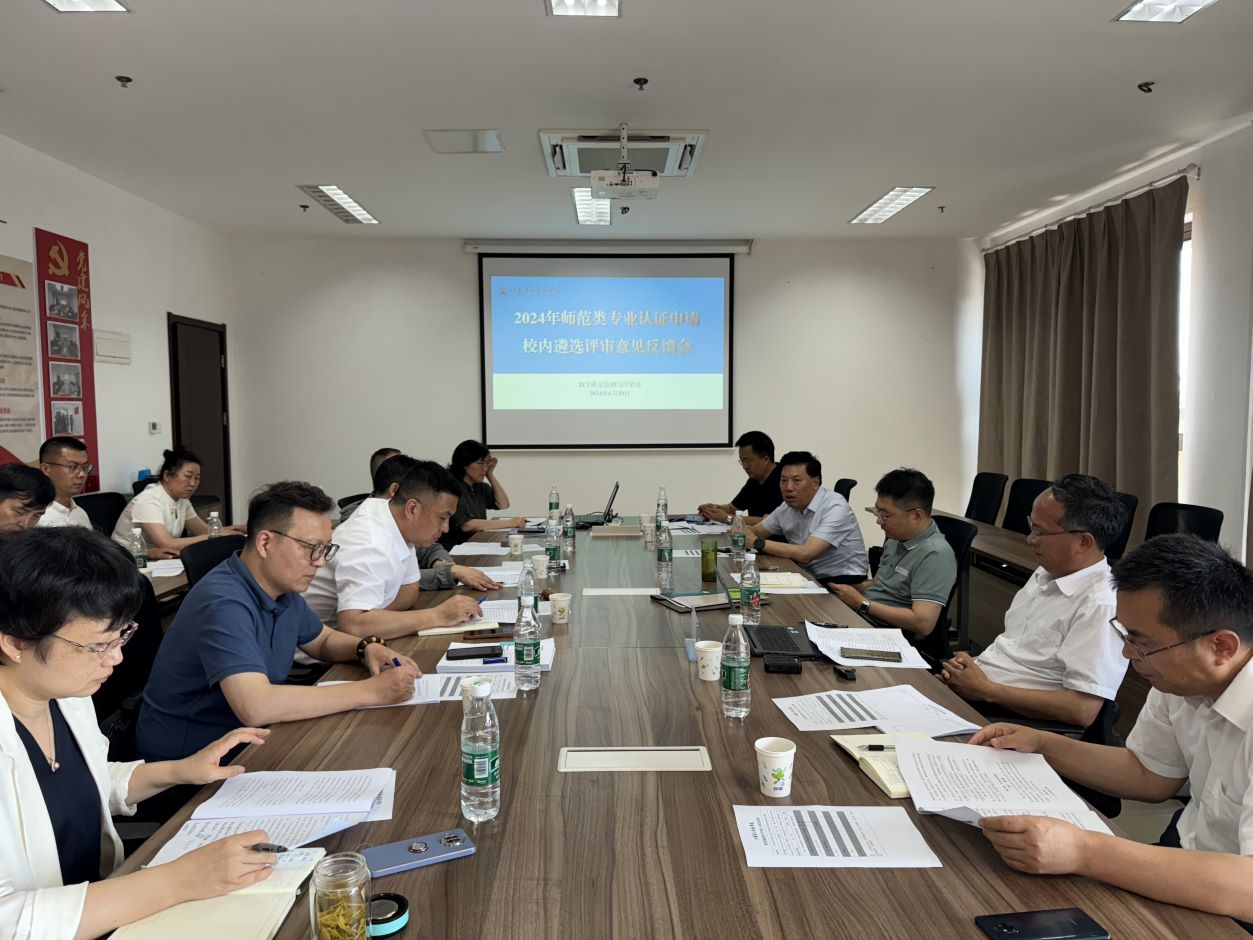 6月20日下午,我校在石湫校区敬业楼323会议室召开2024年师范类专业认证申请校内评审意见反馈会暨工作推进会。相关评审专家和副校长花书贵出席会议,教育技术学、历史学、物理学、美术学、思想政治教育和体育教育专业认证工作团队主要负责人,教务处、教学质量监测与评估处相关人员参加会议。会议由教学质量监测与评估处处长顾晔峰主持。