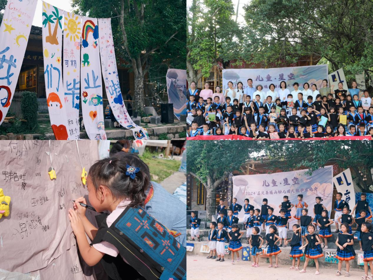 7月12日盛夏的傍晚,以“儿童·星空”为主题的幼儿园大班毕业晚会于瑶山古寨隆重上演。与此同时,实践团队结合走访研学的经验积累,打造“荔波儿童艺术联展”,为美育浸润儿童、形塑荔波儿童精神风貌注入了新鲜血液和理想动力。