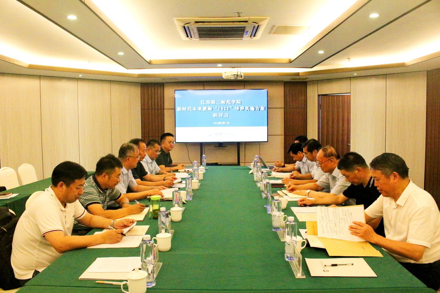 8月11日下午,我校《新时代师范生培养实施方案》(以下简称《方案》)研讨会在草场门校区举行。教育部原副部长、江苏省原副省长王湛,省教育厅原副厅长、省教育学会会长朱卫国,江苏凤凰出版传媒集团有限公司党委书记、董事长章朝阳,江苏省教育科学研究院党委书记、院长陆岳新,省教育厅基础教育处处长顾春明,省教育厅教师工作处处长张卫星,江苏省教育评估院院长周明等专家,以及我校党委书记王鲁沛,副校长皇甫立同、花书贵及相关职能部门负责人参加研讨会。