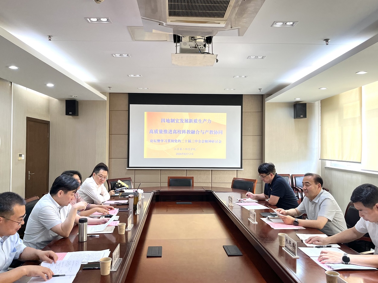 近日,“新质生产力赋能高质量发展”专题会议在我校草场门校区教科研楼505会议室举行。会议由江苏第二师范学院党委常委、副校长梅景辉主持。全国政协常委、南京财经大学校长程永波,中国南水北调集团水网智科公司总经理李志伟,中国科学院上海有机化学研究所副所长李昂以及相关部委司局负责人出席会议并作主旨报告。江苏第二师范学院科研处处长姚苏平、教务处处长仇方道、特聘教授赵海涛、科研处副处长丁正峰、计算机工程学院副院长、江苏省基础教育大数据工程应用研究中心执行主任倪艺洋参加了会议。本次会议的议题为:因地制宜发展新质生产力,高质量推进高校科教融合与产教协同。