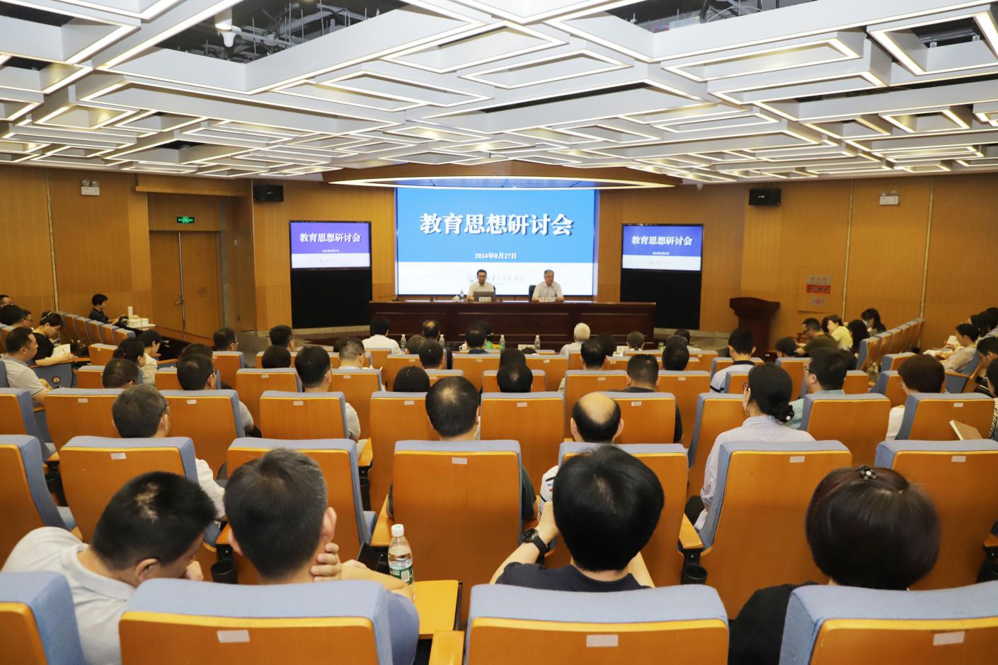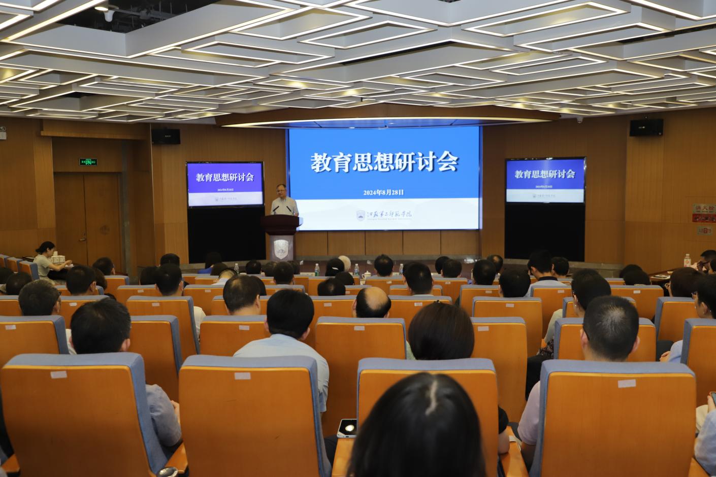 为深入学习贯彻党的二十大精神和二十届三中全会精神,学习贯彻习近平总书记关于江苏工作的重要讲话精神和关于教育的重要论述,落实立德树人根本任务,围绕服务国家重大战略和区域经济社会发展,深化教育科技人才体制机制一体改革,8月27日至28日,我校在草场门校区现代教育技术楼报告厅召开教育思想研讨会,进一步拓宽视野、更新理念,加强对学校高质量发展的前瞻性思考、战略性谋划、科学性布局、整体性推进。