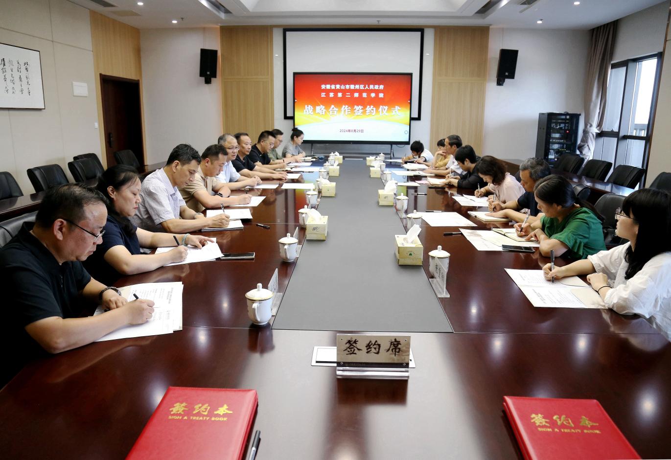 徽州区政府是我校近年来新增的首个跨省域校地战略合作伙伴。本次协议的签署,实现了我校在服务区域发展、提升贡献份额方面的新突破。根据协议,我校与徽州区政府将在首个5年合作期内,合力实施师资能力素质提升、基础教育学校共建、高端人才互聘互访、文旅教育融合发展、学生研学基地共建、乡村振兴战略助力等6项计划。