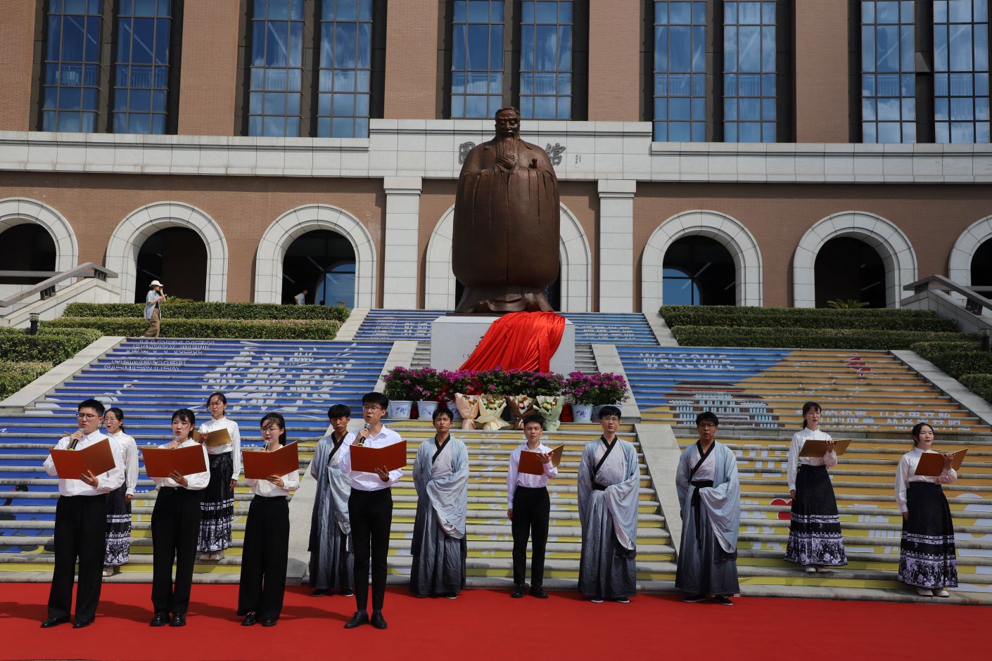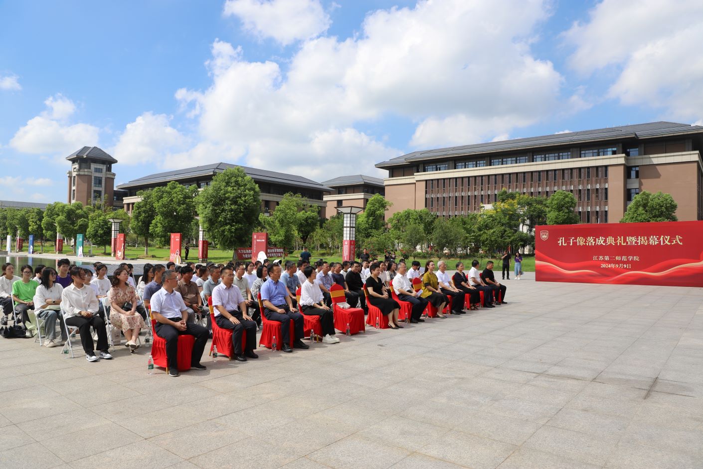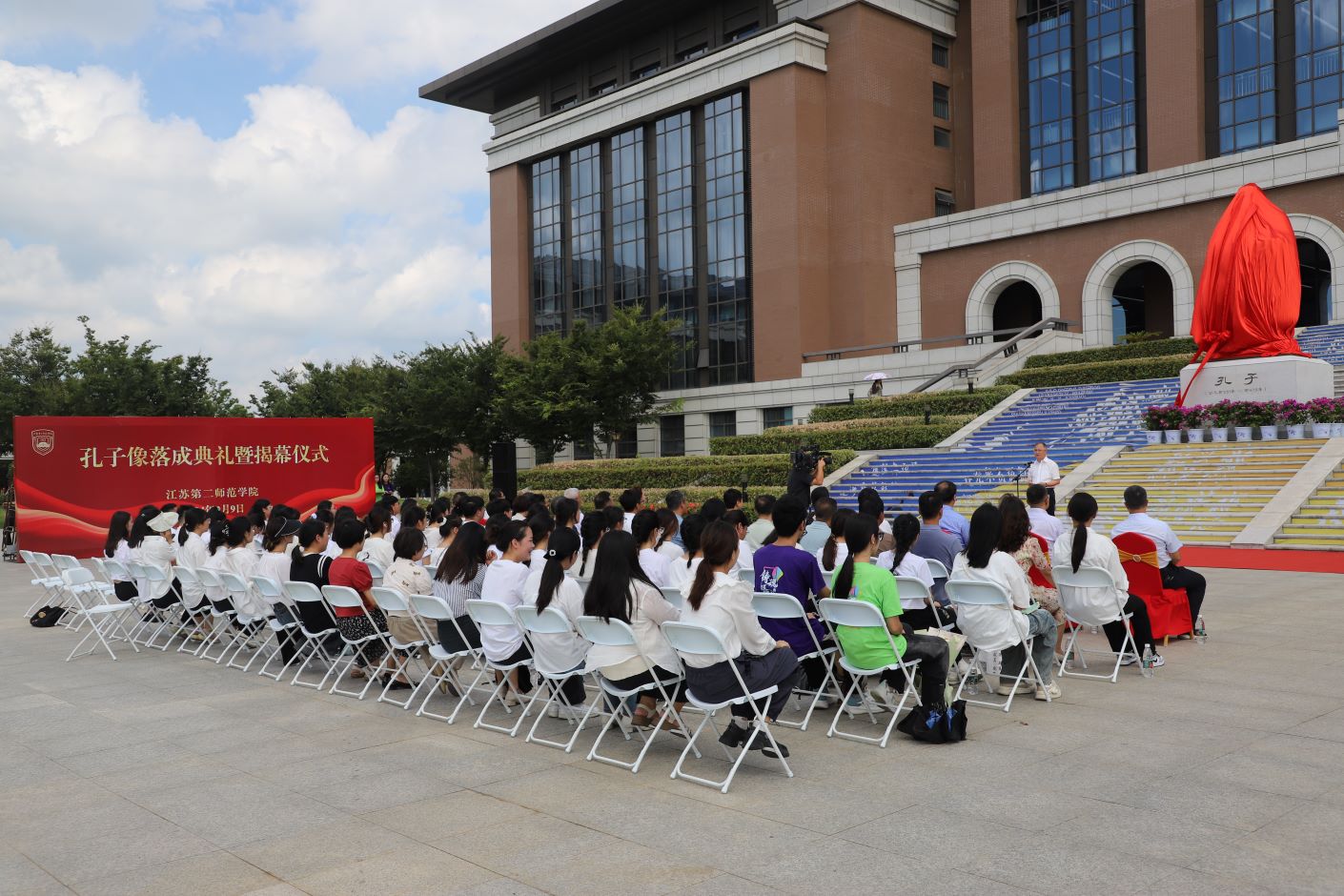 为进一步落实立德树人根本任务,大力弘扬教育家精神,营造尊师重教的浓厚校园氛围,9月9日,我校在石湫校区举行孔子像揭幕仪式。溧水区委常委、区政府党组成员费莉莉,西脉国际医疗集团董事、苏州西脉生物科技有限公司董事长、我校05级杰出校友杨云,我校全体在宁校领导,孔子像创作者我校美术学院教师李岩、谢渊,孔子像赞文的创作者我校人文学部主任、教授冯保善以及学校各职能部门负责人和师生代表参加仪式。