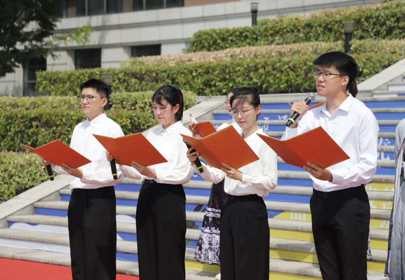 仪式上,校党委书记王鲁沛和溧水区委常委、区政府党组成员费莉莉共同为孔子像揭幕,校党委常委、副校长姚振标为杰出校友杨云颁发捐赠证书及孔子铜像模型,师生代表向孔子像献花并朗诵《论语》章节。