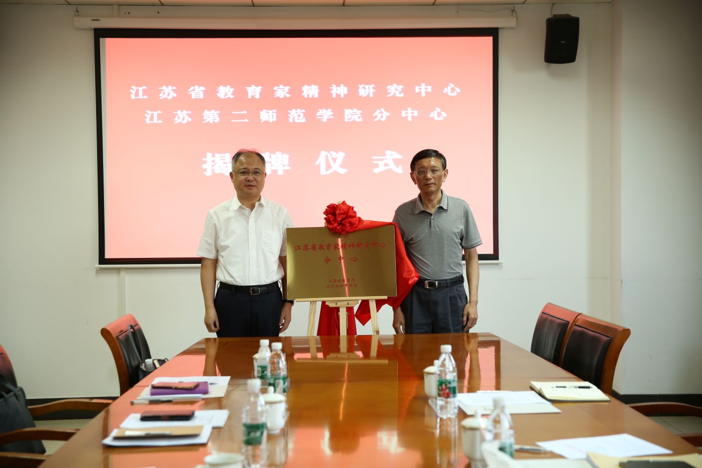 会上,潘漫、王鲁沛共同为江苏省教育家精神研究分中心揭牌。