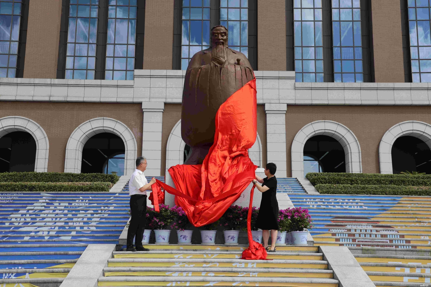 央视网消息 为进一步落实立德树人根本任务,大力弘扬教育家精神,营造尊师重教的浓厚校园氛围,9月9日,江苏第二师范学院在位于南京市溧水区的石湫校区举行孔子像揭幕仪式。仪式现场,江苏第二师范学院党委书记王鲁沛和溧水区委常委、区政府党组成员费莉莉共同为孔子像揭幕。