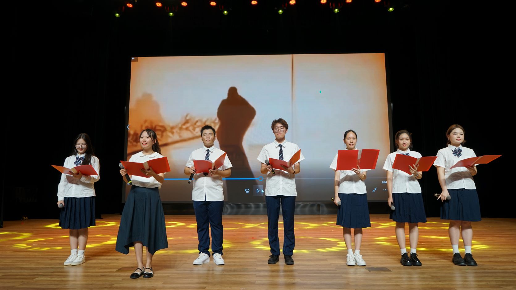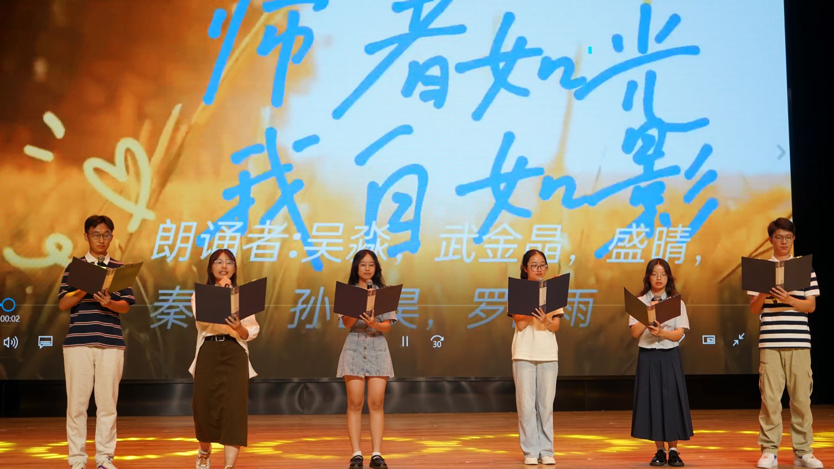 文学院孟文博老师指导的学生团队原创诗歌《风化金陵雨,桃李系万千》作了展示演出。该作品深情讲述了南京市两位教师的大爱育人故事,传递了这两位老师言为士则、行为世范的道德信念,以及勤学笃行、求是创新的躬耕态度。