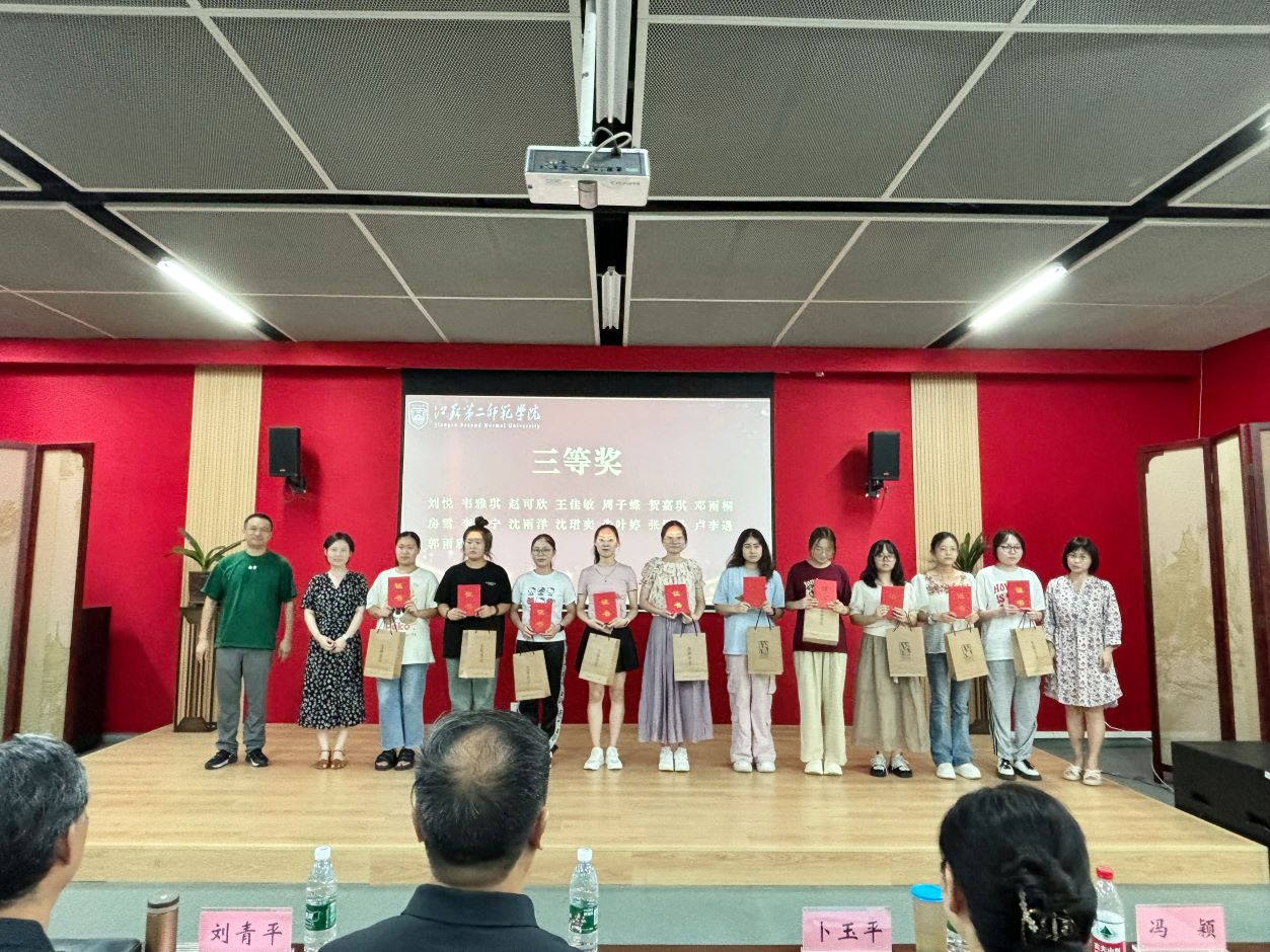 随后,进入了颁奖仪式环节。本次征文活动共评选出一等奖3篇、二等奖7篇、三等奖15篇,获奖学生代表依次上台领取荣誉证书及奖品。
