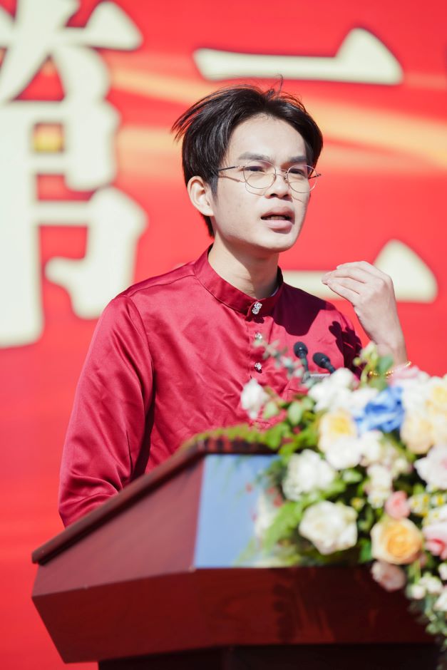 美术学院的陆明达作为留学生代表,上台发言。他说他是马来西亚的第四代华人,从小在南京上过学,喜欢六朝古都南京。来到二师,老师们和同学们的热情和温暖,让他在异国他乡感到舒适和温馨。