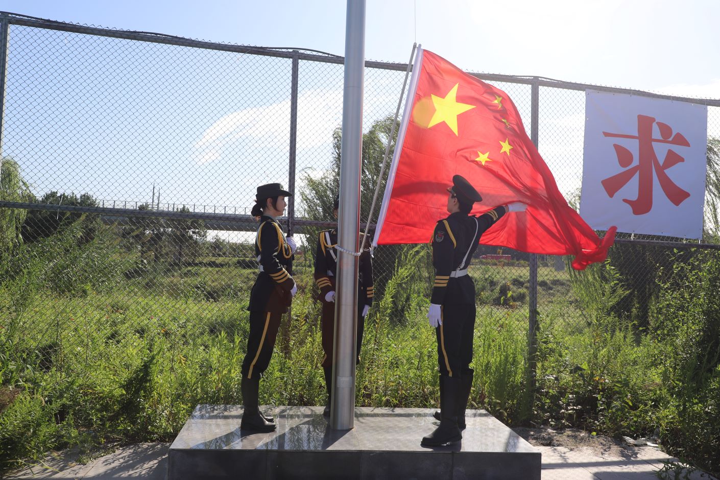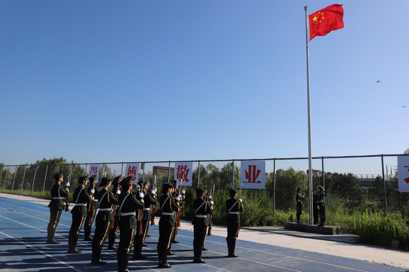 英姿飒爽的国旗护卫队入场,全体师生起立,面向国旗,在雄壮的国歌声中,开学典礼拉开帷幕。