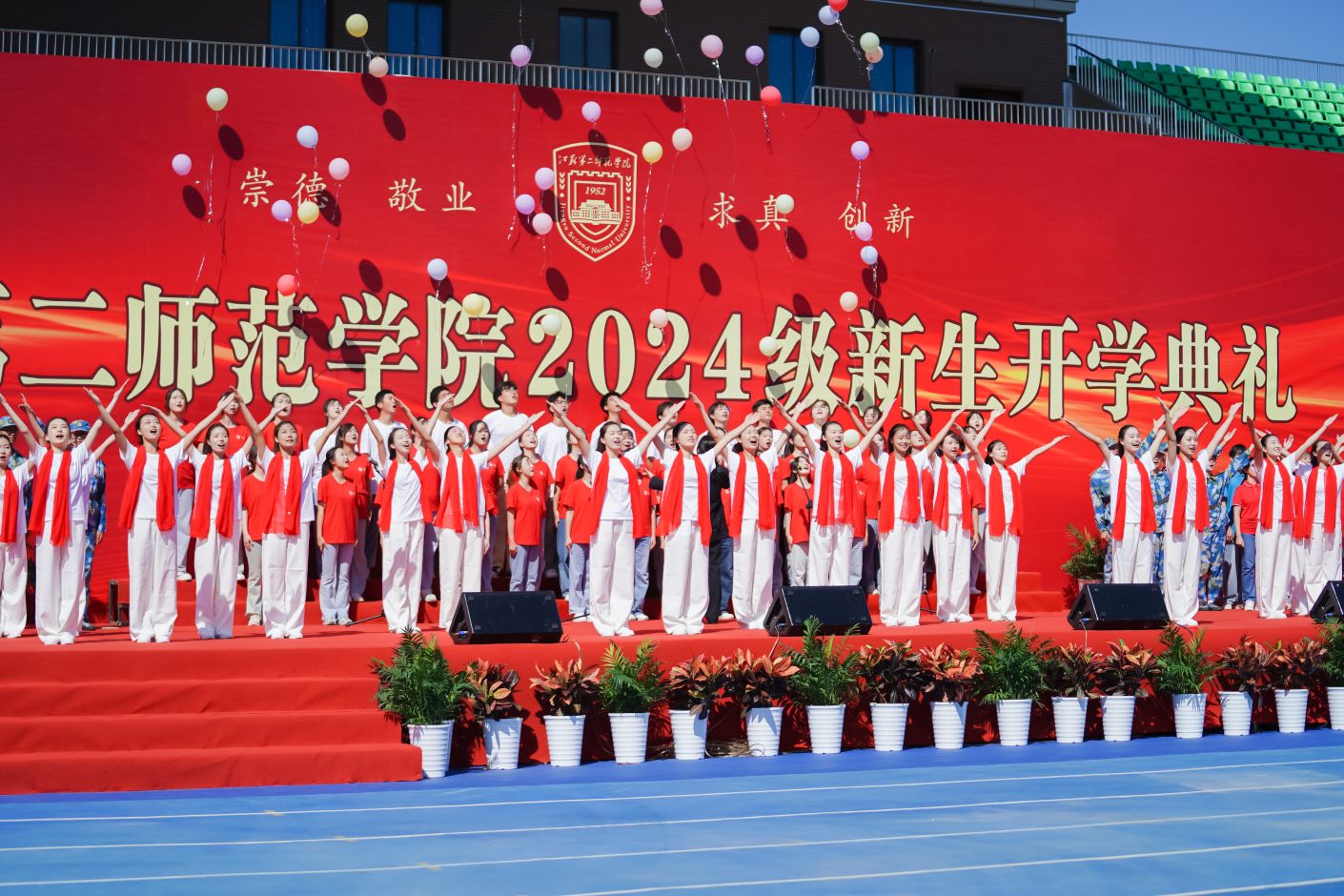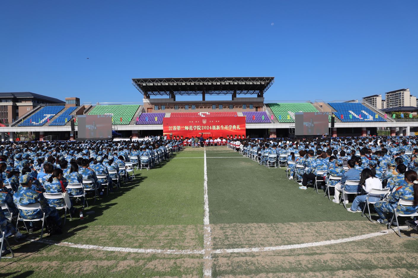 天清白露下,始觉秋风还。初秋的石湫校园生机盎然,洋溢着蓬勃的青春气息。9月22日上午,江苏第二师范学院2024级新生开学典礼在石湫校区体育场隆重举行。4164名新生和来自14个国家的72名留学生齐聚于此,共迎盛会。