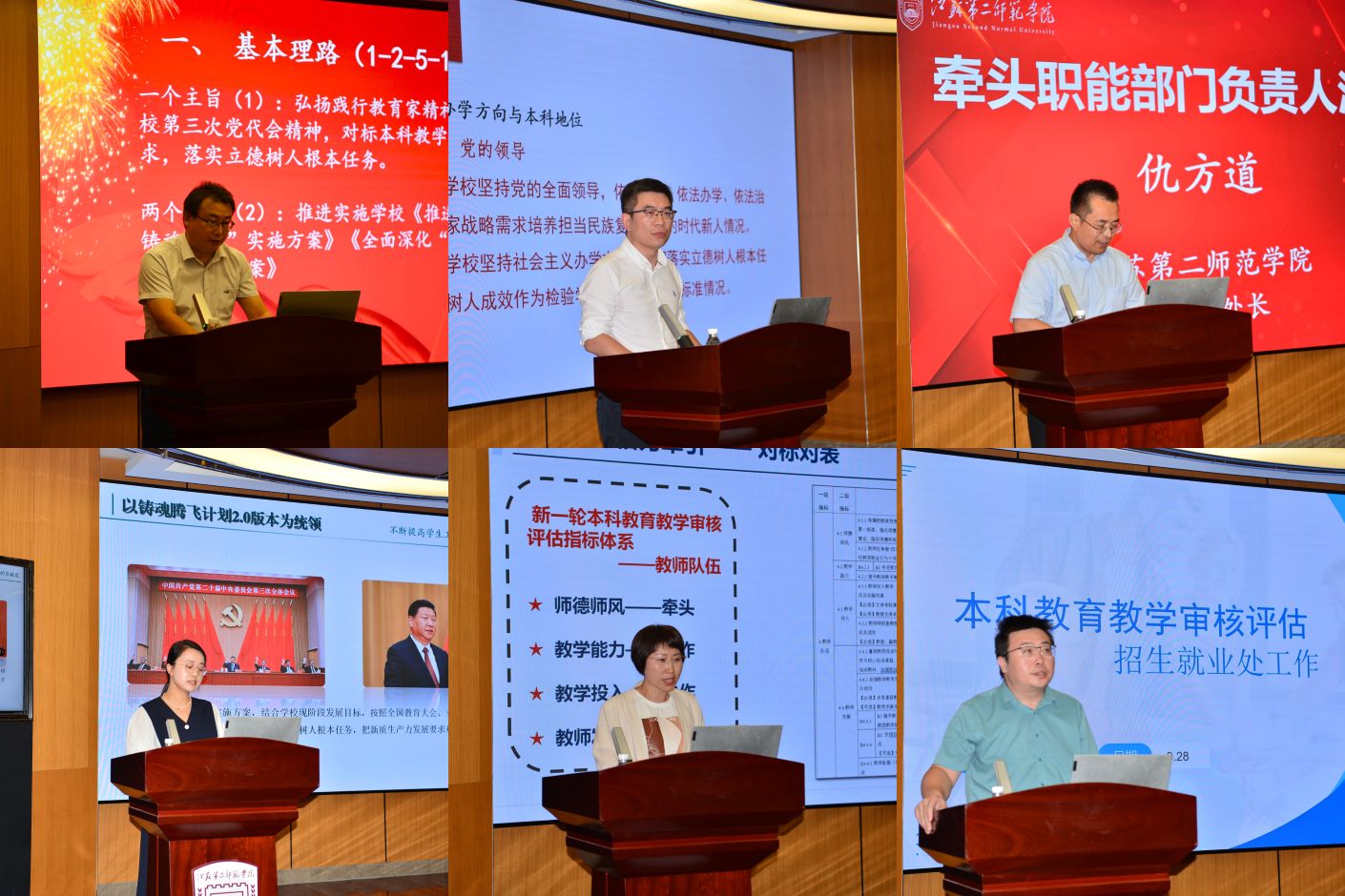审核评估工作方案各牵头部门分别从党建工作、思政教育、本科教学、教师队伍和质量文化等五个方面,对在审核评估工作中的重点任务进行汇报。未来一年,各牵头部门将有序推进审核评估相关工作,加强协同联动,共同推动学校教育教学质量的全面提升。
