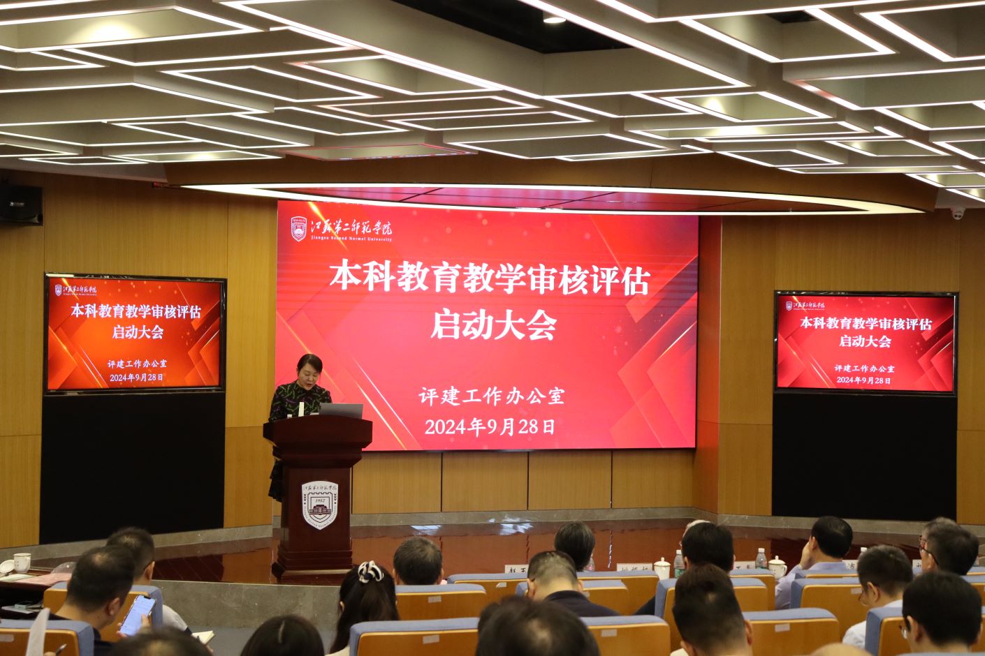 9月28日上午,我校召开本科教育教学审核评估工作启动大会。上海海关学院校长丛玉豪出席会议并作主题报告。校党委书记王鲁沛,党委副书记、副校长刘继红,纪委书记崔燕,副校长姚振标,副校长皇甫立同,副校长赵玉蓉,全体中层干部,专业负责人,教师代表及校评建办人员共200余人参与会议。会议由刘继红主持。