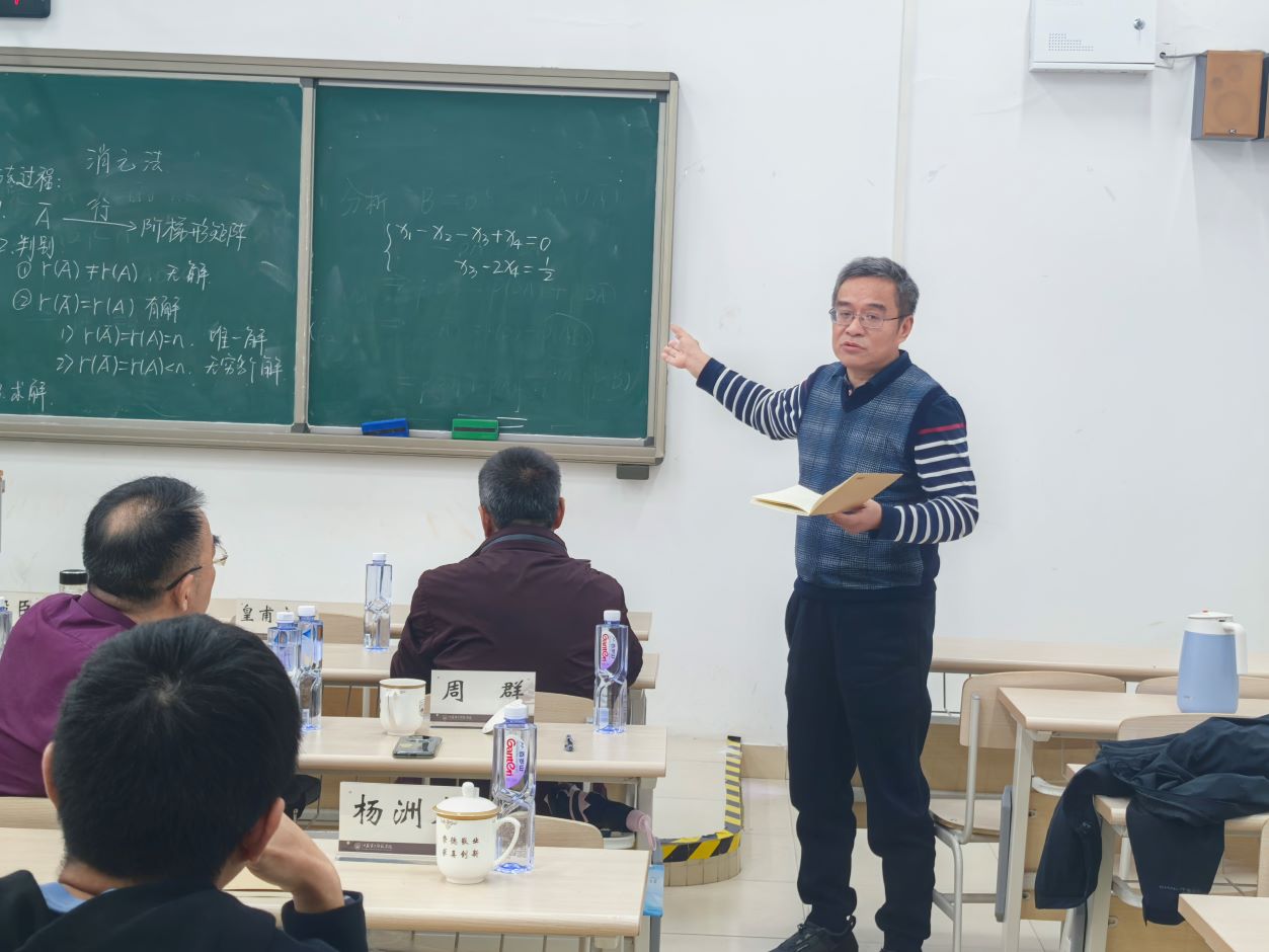 而后,两位青年老师乔妍、姜美美还进行了高等数学、线性代数课程内容的教学展示。乔妍以“定积分的概念”为题,以曲边梯形的面积求解为引导,详细介绍了定积分的定义,并通过定义引出了相关的性质。姜美美讲课内容为“消元法”,从中国古代数学典籍九章算术中方程的解法出发,引出阶梯型矩阵,展示数学的魅力与重要性,激发学生深入探究学习的热情。