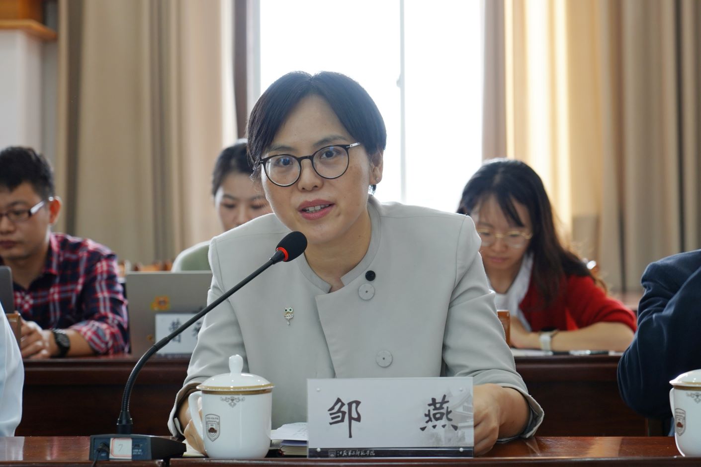 省教育厅社政处处长邹燕对新时代师德教育研究中心的建设工作给予了高度的评价。她表示,研究中心在建设过程中培育了人才、凝练了成果,取得了很好的成绩。她对中心的发展充满信心和期待,并希望研究中心以习近平总书记系列重要讲话及全国教育大会精神为指导,调动研究力量,创新研究成果,提供政策指导,在不断探索中谋长远促发展。