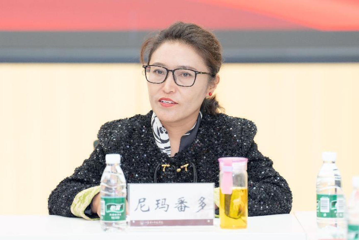 雅松艺术团团长尼玛番多女士随后发言。她深情地讲述了江苏援藏三十年的深厚情谊,高度评价了音乐学院为此次研修班所做的精心准备和提供的丰富教育资源。她表示,艺术团将充分利用这次宝贵的学习机会,努力提升专业技能,探索艺术创新之路,为曲水县的文艺事业贡献新的力量。