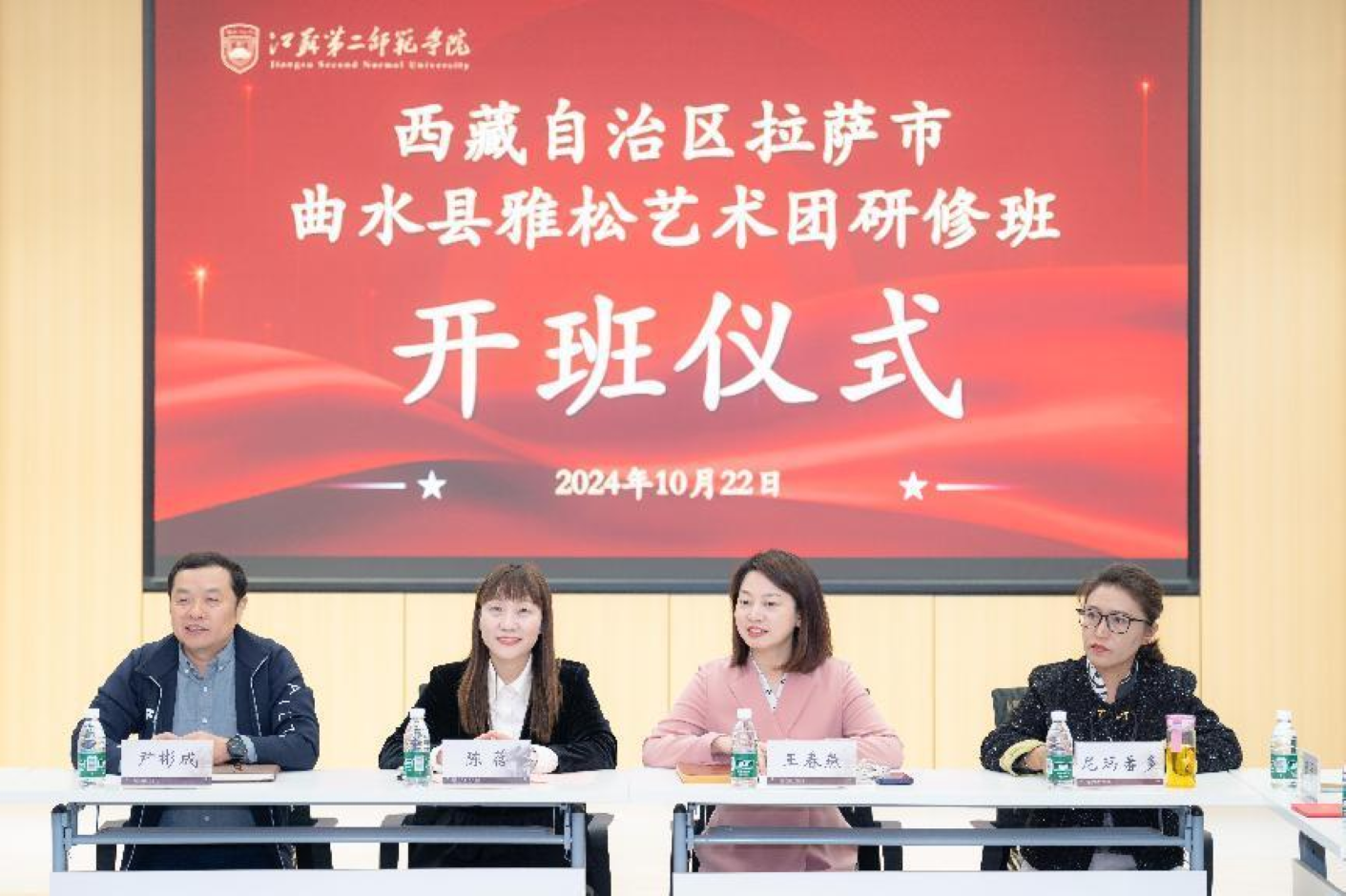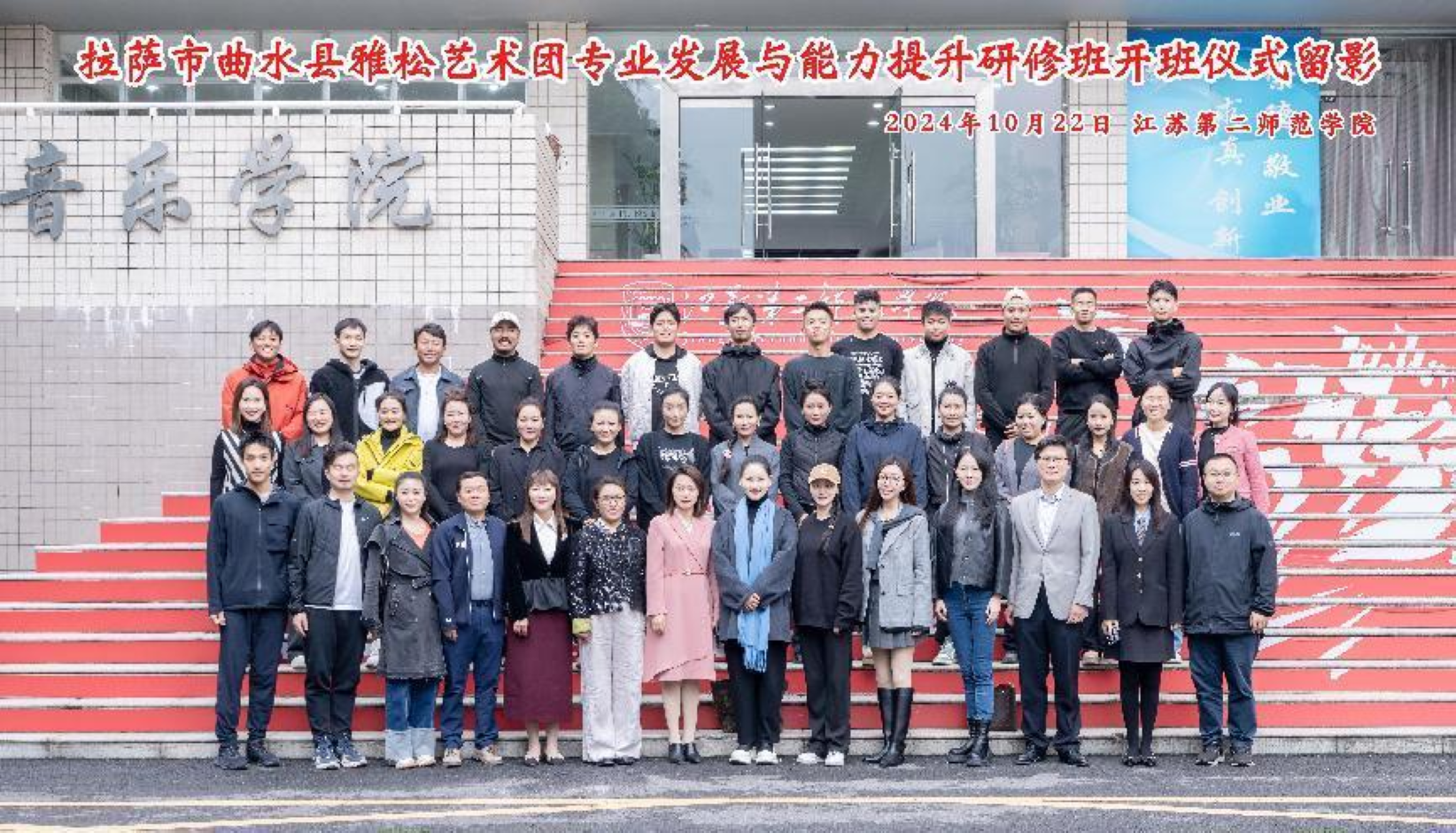 为深入贯彻落实习近平总书记在全国民族团结进步表彰大会上的重要讲话精神,进一步加强苏拉两地交往交流,铸牢中华民族共同体意识,10月22日下午,由我校音乐学院与拉萨市曲水县文旅局联合举办的“曲水县雅松艺术团专业发展与能力提升研修班”在江苏南京顺利开班。