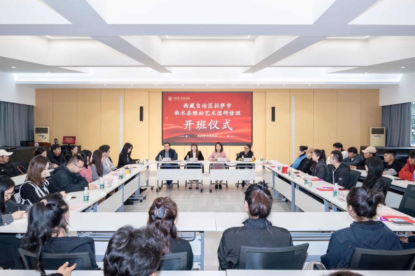 10月22日下午,由江苏第二师范学院音乐学院与拉萨市曲水县文旅局联合举办的“曲水县雅松艺术团专业发展与能力提升研修班”在江苏南京顺利开班。江苏第二师范学院党委常委、统战部部长陈蓓、音乐学院领导班子、研修班授课教师、曲水县雅松艺术团成员等出席开班仪式。开班仪式由音乐学院院长王春燕主持。
