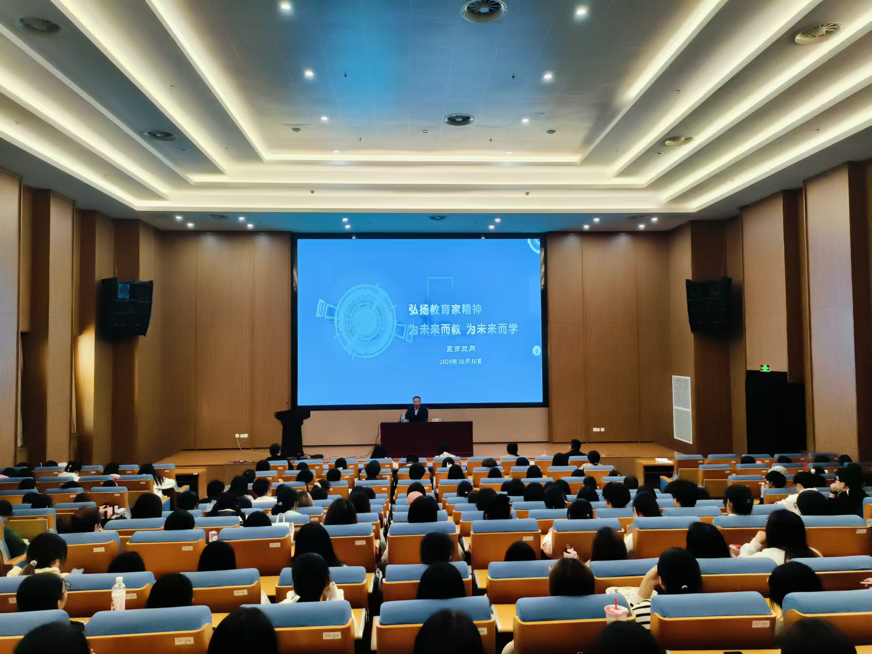 10月30日,副校长、教育学部主任、教育学部党工委书记(兼)皇甫立同,以“为未来而教,为未来而学”为题作教育家精神专题讲座。崇德书院全体普本新生和部分二年级乡村定向师范生代表、教育学部(教育科学学院)党总支书记丁莹、崇德书院全体辅导员现场聆听。讲座由崇德书院党总支副书记王晶主持。