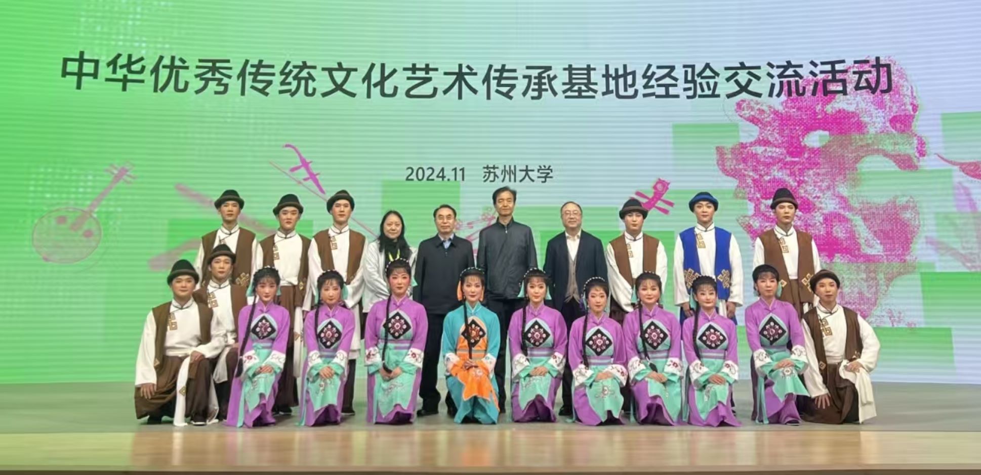 我校锡剧《双推磨》受邀参加本次全国中华优秀传统文化传承基地实践成果汇报演出,本次演出共有4个传承基地受邀参演,节目受到与会的领导、代表们的高度称赞和一致好评。