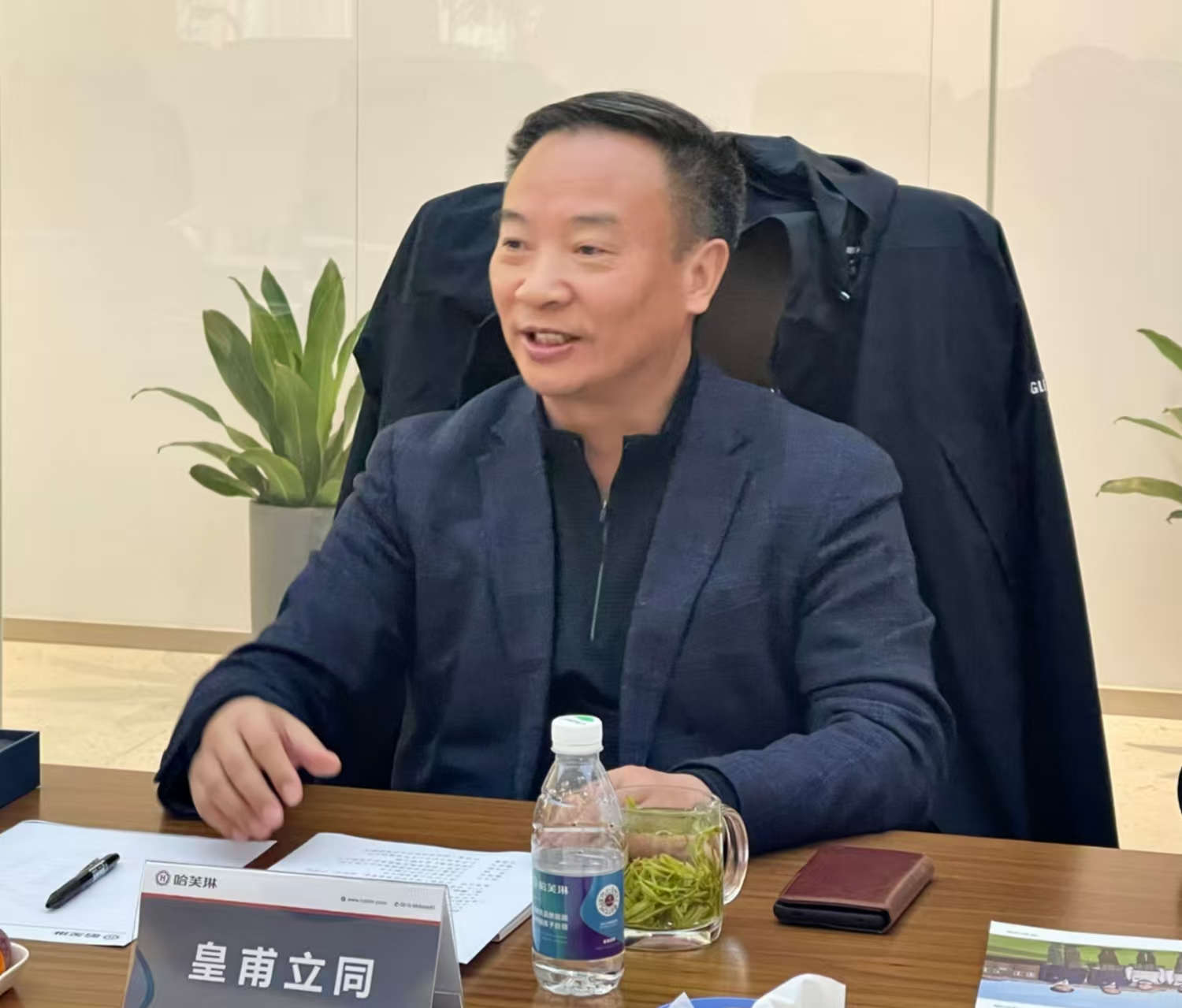 在公司举行的访企拓岗和项目洽谈会上,徐海斌致欢迎辞,对皇甫立同一行的到访表示热烈欢迎。他表示,哈芙琳公司是国内著名的集设计研发、生产制造和销售服务于一体的校园服饰系统服务商。公司基于SIS学校文化识别系统功能、视觉、学校文化四个维度,凭借专属设计、精工制造、精准服务三大品牌优势,为国内学校提供定制化的校服产品和服务方案。现代企业的发展升级,离不开高校的产教融合和智力支持。希望与江苏二师、省师干训中心在各自擅长领域开展深度合作,促进双方事业高质量发展。