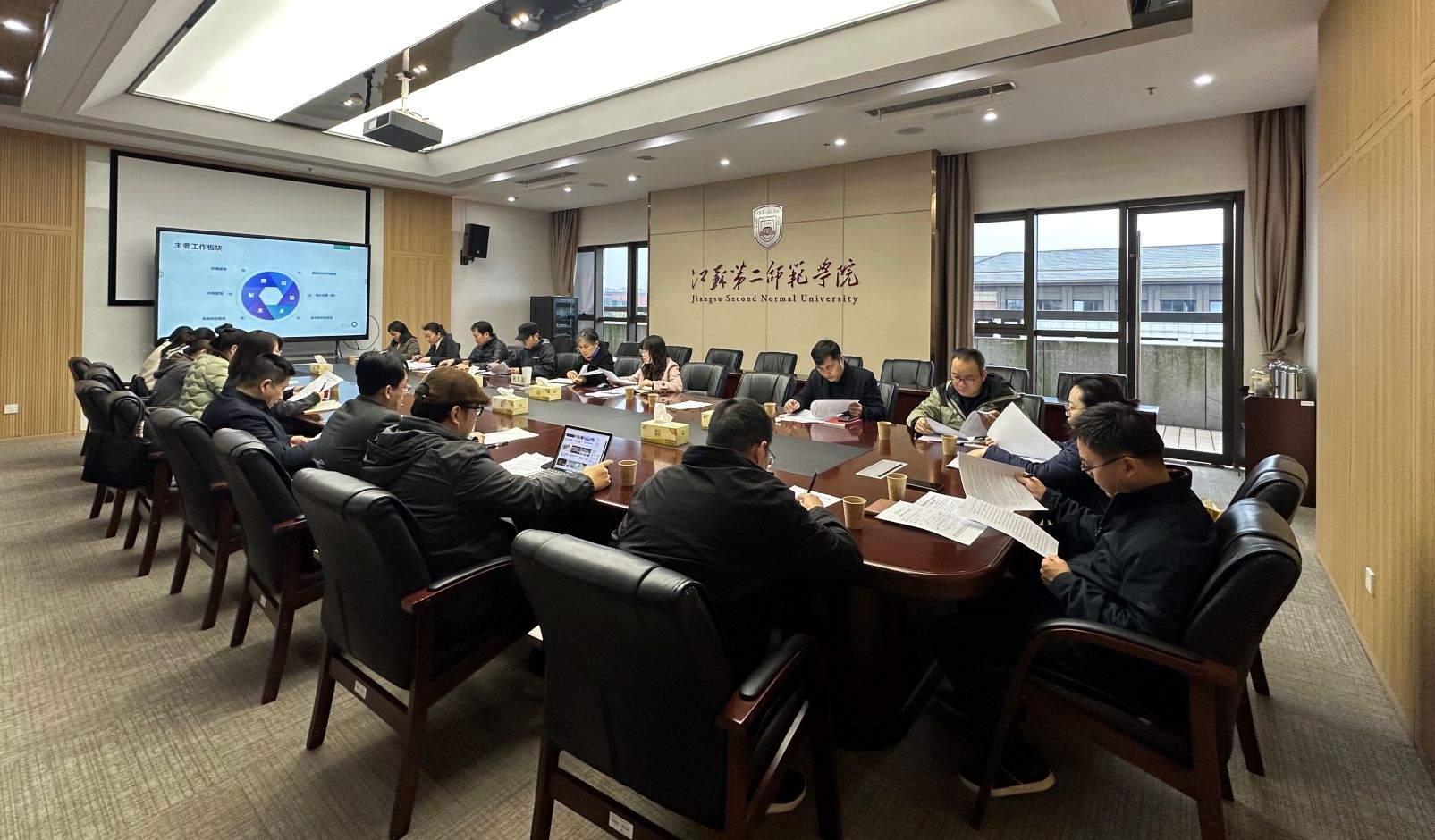 11月25日下午,我校在石湫校区召开外事工作推进会。校党委常委、副校长赵玉蓉出席会议,各二级院部代表及国际处全体成员参加会议,会议由国际处处长梁婧玉主持。