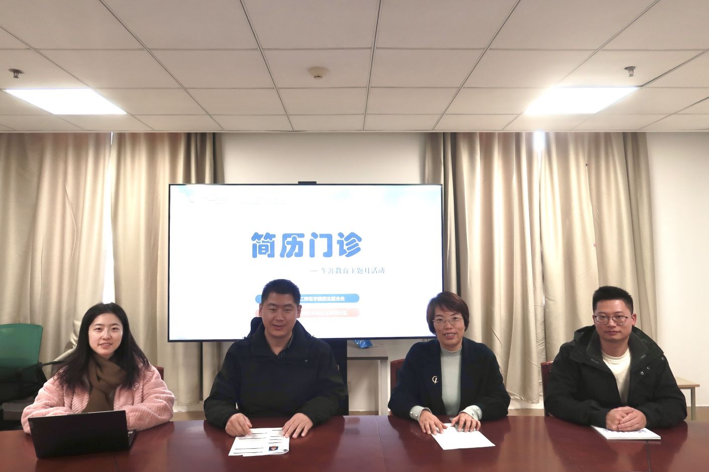 为贯彻落实党中央、国务院“稳就业、保就业”的决策部署,助力2025届毕业生提高就业核心竞争力,推动实现高质量充分就业,11月29日,由我校招生就业处主办,“一站式”就业指导社区承办,开展生涯教育主题月活动——“简历门诊”服务,以培养学生简历制作技能,传授就业求职技巧。我校招生就业处副处长李佶莲,《大学生职业规划与就业指导》及大学生核心就业能力培训课程讲师梅楠、张贺担任“门诊”导师。同时邀请了来自中国教育在线-江苏分线,拥有丰富大厂管理经验的郭锐作特约指导。