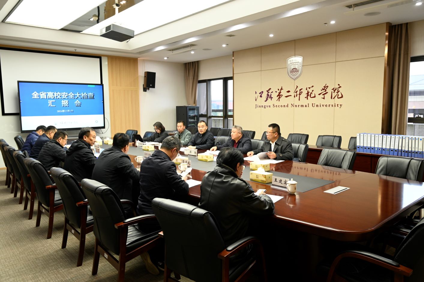 汇报会上,皇甫立同副校长代表学校对检查组一行表示热烈欢迎,并从顶层设计、制度落实、安全意识养成及日常监督管理四个方面简要介绍了全校安全工作现状。贺志武处长就学校安全工作开展情况向检查组作专题汇报。会后,检查组通过查阅台账、实地走访等方式,围绕消防安全、交通安全、食品卫生安全和治安防范等内容展开全面安全检查。检查中,专家们精准把脉、悉心指导,对学校工作中的特色亮点予以充分肯定,对存在的问题隐患提出整改建议。
