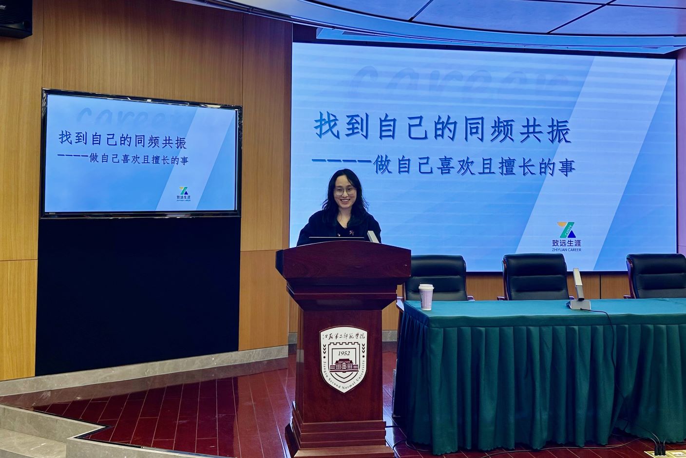 为更好地帮助学生进行有效的生涯规划,提升其对未来职业路径的认知和准备,12月4日下午,招生就业处在草场门校区举办生涯教育主题月活动——职业规划讲座:找到自己的同频共振。本次讲座特别邀请致远生涯研究院讲师、就业指导课讲师宗玲主讲。全校共有200余名学生聆听了本次讲座。