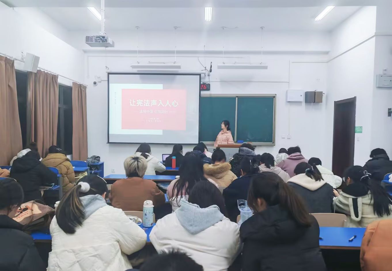 学校坚持推动宪法宣传教育常态化长效化。据悉,9月以来我校积极组织“学宪法 讲宪法”知识竞赛和演讲比赛以及“宪法卫士”2024年行动计划系列活动,“宪法卫士”参与人数达13235人,参与率为100%。