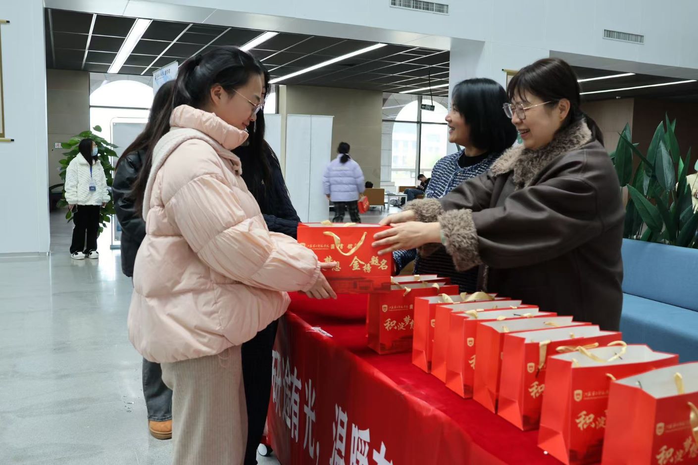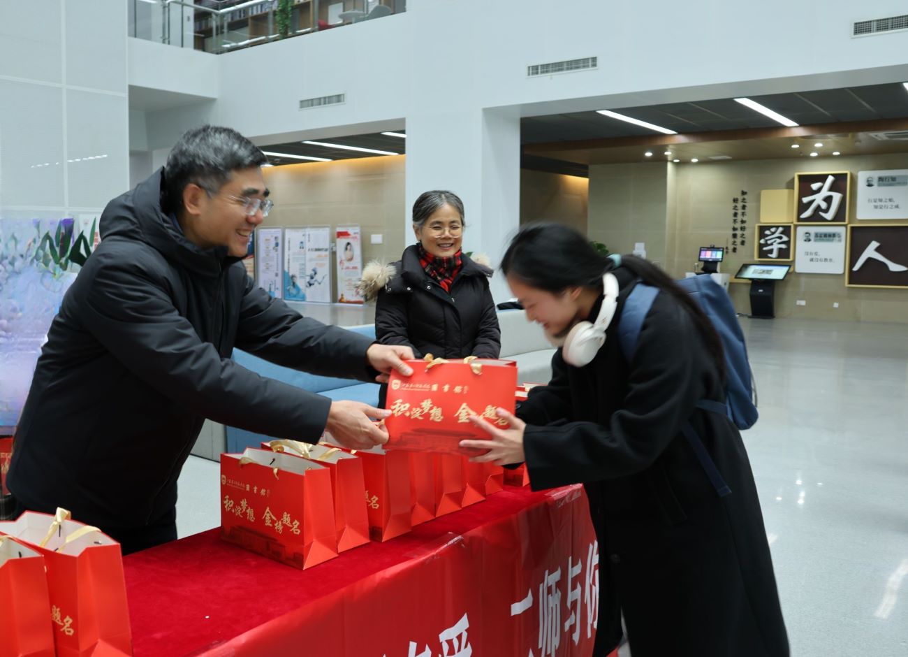 12月11日下午,由我校图书馆与校关工委联合举办的“研路有光·真情相伴”关爱助力活动在石湫校区图书馆二楼大厅圆满举行。活动由图书馆馆长施雁冰主持,校长徐国华、副校长赵玉蓉以及校关工委、离退休工作处冯颖亲临现场,与在场考研学子共度这一暖心时刻。