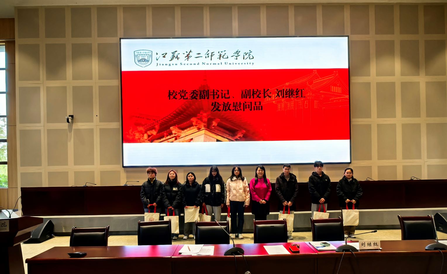 12月11日下午,我校在石湫校区敬业楼107报告厅举行“冬日送温暖”活动。党委副书记、副校长刘继红出席活动。党委学工部工作人员,石湫校区相关学院、学部、书院师生代表共100余人参会。活动由党委学工部部长刘姝主持。