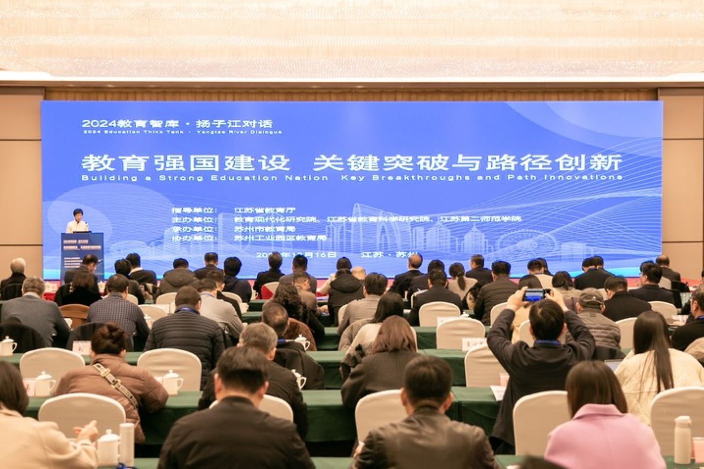 12月16日,教育现代化研究院、江苏省教育科学研究院、江苏第二师范学院联合举办的2024“教育智库·扬子江对话”在苏州举行。本次活动以“教育强国建设:关键突破与路径创新”为主题,深入学习贯彻党的二十届三中全会精神和全国、全省教育大会精神,积极落实《教育强国建设规划纲要》,提升新型教育智库对教育强国强省建设的战略性支撑作用,共同为新时代教育事业的繁荣发展贡献智慧和力量。